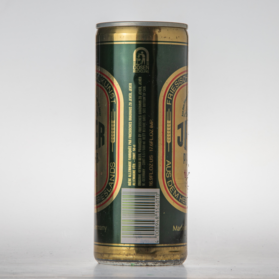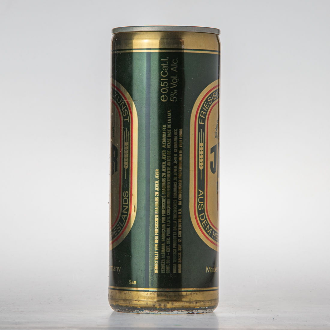 HERGESTELLT VON DEM FRIESISCHEN BRAUHAUS ZU JEVER, JEVER / CERVEZA ALEMANA, FABRICADA POR FRIESISCHES BRAUHAUS ZU JEVER, JEVER ALEMANIA FED. CONT 50cl EXT.SEC.PRIM. 11,5% CNSUMIR PREFERENTEMENTE ANTES DE: VEASE BASE DE LA LATA / BIRRA TEDESCA PRDOTTA DALLA FRIESISCHES BRAUHAUS ZU JEVER, JEVER GERMANIA OCC. GRADI SACCR. SUP12 CONTENUTO lt. 0,5 DA CONSUMARSI PREFERIBILMENTE: VEDI FONDO / e 0,5l Cat. I, 5% Vol. Alc. / DOSEN RECYCLING / 4 008948 154010 / BIERE ALLEMANDE FABRIQUEE PAR FRIESISCHES BRAUHAUS ZU JEVER, JEVER ALLEMAGNE FED CONT 50cl / ORIGINAL GERMAN BEER, PRODUCED BY FRIESISCHES BRAUHAUS ZU JEVER, JEVER W.-GERMANY CONT 0,5l/500ml BEST BEFORE DATE: SEE BOTTOM OF CA. / 16.9 FL.OZ.US 17.6FL.OZ.IMP