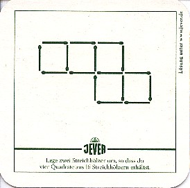 Friesisches Brauhaus / JEVER / Lege zwei Streichhölzer um, so dass du vier Quadrate aus 16 Streichhölzern erhältst. / Lösung unter www.jever.de