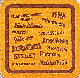 Charlottenburger Pilsner / JEVER / König-Pilsener / Schultheiss / WOLTERS / SCHLÖSSER ALT / Bitburger / Kronenbourg / BECK’s BIER / SPATEN / ASTRA / Fürstenberg / KULMBACHER / Reichelbräu