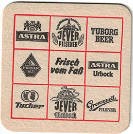 Attribut Wert Alter (min.) Alter (max.) Identifikation (Jever-Fan) ID I001395 / B1395 / S2 Typ Bierdeckel Identifikation (FvB/BDM) Kategorie Gastronomie Attribute (Allgemein) Form Quadratisch Gastronomie Bier-Akademie Logo Maibock 9 Logo Pilsener 6 Maße HxBxT (cm) 9,3x9,3x0,1 Material Papier/Pappe Ort Jever > Jever > Landkreis Friesland > Niedersachsen > Deutschland Sorte Maibock Sorte Pilsener