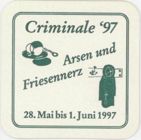 Attribut Wert Alter (min.) Alter (max.) Identifikation (Jever-Fan) ID I001516 / B1516 / S2 Typ Bierdeckel Identifikation (FvB/BDM) Kategorie Datum Vorderseite 8-13 Attribute (Allgemein) Event Criminale '97 Form Quadratisch Logo Dachmarke 2 Maße HxBxT (cm) 9,3x9,3x0,1 Material Papier/Pappe Sorte (Dachmarke) Attribute (Zeitstempel) Eigene 19970528, 19970529, 19970530, 19970531, 19970601 28.05.1997 01.06.1997
