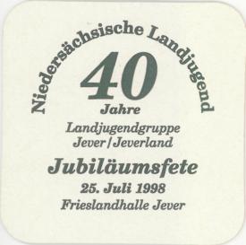 Attribut Wert Alter (min.) Alter (max.) Identifikation (Jever-Fan) ID I001524 / B1525 / S2 Typ Bierdeckel Identifikation (FvB/BDM) Kategorie Datum Nummer 374 Vorderseite 8-13 Attribute (Allgemein) Event 40 Jahre Landjugendgruppe Jever/Jeverland Form Quadratisch Logo Dachmarke 2 Maße HxBxT (cm) 9,3x9,3x0,1 Material Papier/Pappe Ort Jever > Jever > Landkreis Friesland > Niedersachsen > Deutschland Sorte (Dachmarke) Attribute (Zeitstempel) Eigene 19980725 25.07.1998 25.07.1998