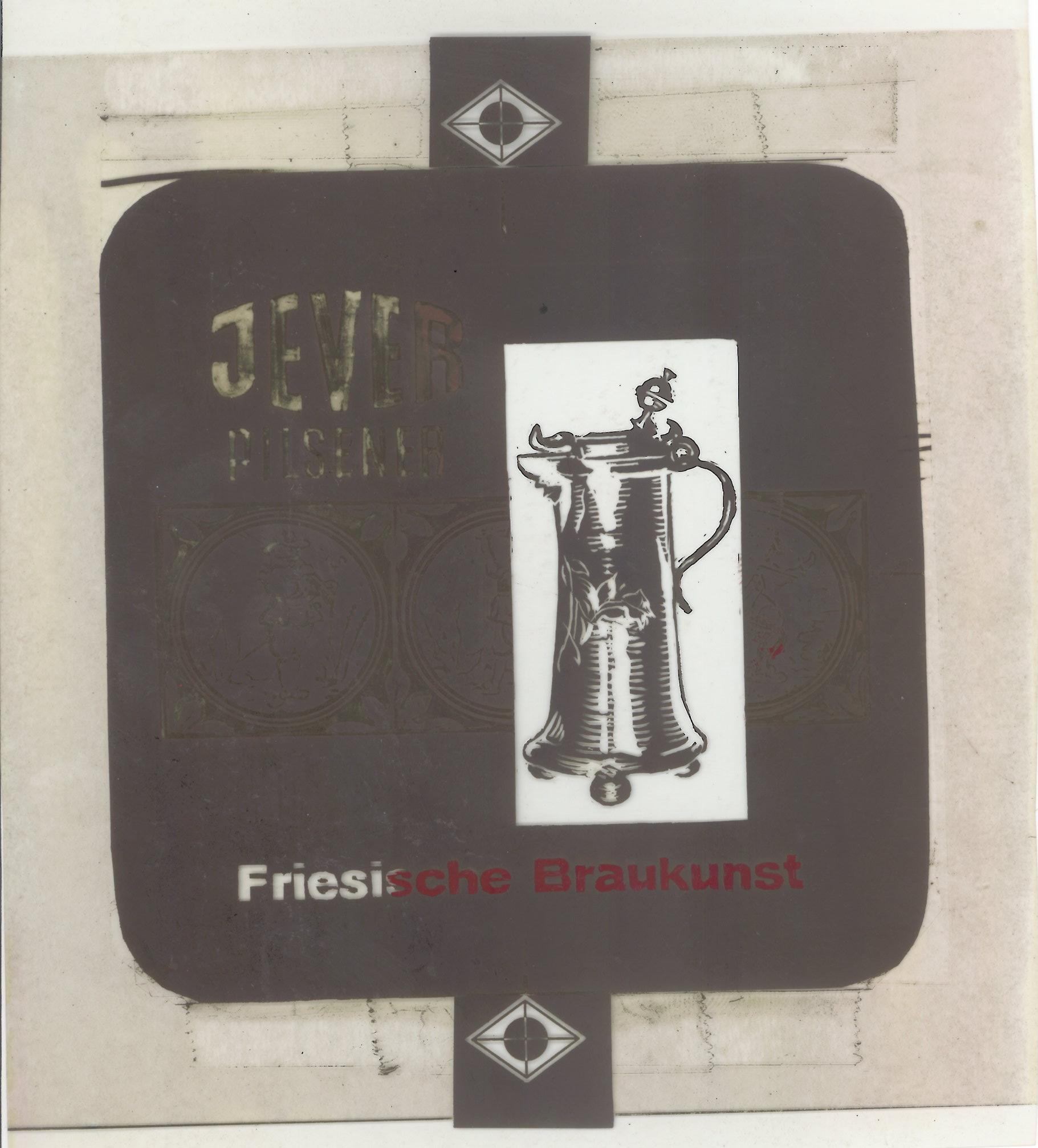 Hierbei handelt es sich um die Originalklischees für die Vorderseite des Bierdeckels B0888, gleichzeitig auch FvB-Vorderseite “3-1” (auf Deckeln B0934-B0938) sowie den dazugehörigen Andruck auf einem alten Originalumschlag aus der Druckerei. Möglicherweise ist der Deckel B0888 somit aus dem Jahr 1971, was zeitlich möglich wäre.