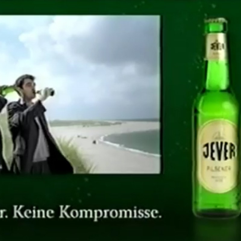 Also hier drüben kommt dann, eh, der Wellnessbereich hin. Und wenn Sie mir bitte hier folgen wollen… das ganze Areal, das wird dann der Golfplatz. / Der verkauft niemals. / Geschmack braucht Charakter. / Der verkauft niemals. / Jever. Keine Kompromisse. Auch alkoholfrei. Jever Fun.