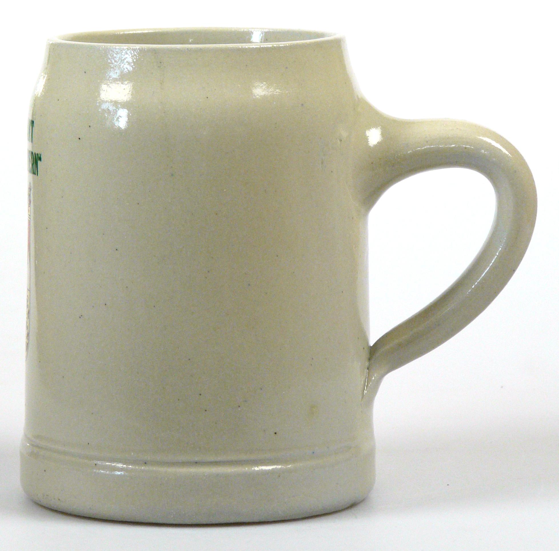 Attribut Wert Alter (min.) Alter (max.) Identifikation (Jever-Fan) ID I001931 / K0037 / B15 Typ Krug Attribute (Allgemein) Form Krug / Seidel Füllstrich geprägt > 0,5l//// Hersteller-Zeichen sahm Inhalt (l) 0,50 Logo Pilsener 2 Maße HxBxT (cm) 12,8x10x10 Material Steingut Sorte Pilsener