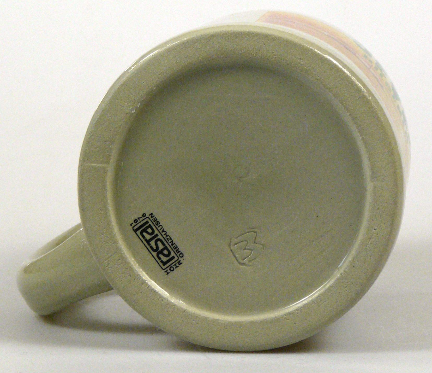 Attribut Wert Alter (min.) Alter (max.) Identifikation (Jever-Fan) ID I001940 / K0046 / B15 Typ Krug Attribute (Allgemein) Form Krug / Seidel Füllstrich geprägt > 0,5l//// Herstellername Rastal GmbH & Co. KG Hersteller-Zeichen WW Hersteller-Zeichen rastal Inhalt (l) 0,50 Logo Pilsener 2 Maße HxBxT (cm) 12,7x9,9x9,9 Material Steingut Ort Langeoog > Langeoog > Landkreis Wittmund > Niedersachsen > Deutschland Sorte Pilsener Attribute (Zeitstempel) Eigene 19770000 1977 1977