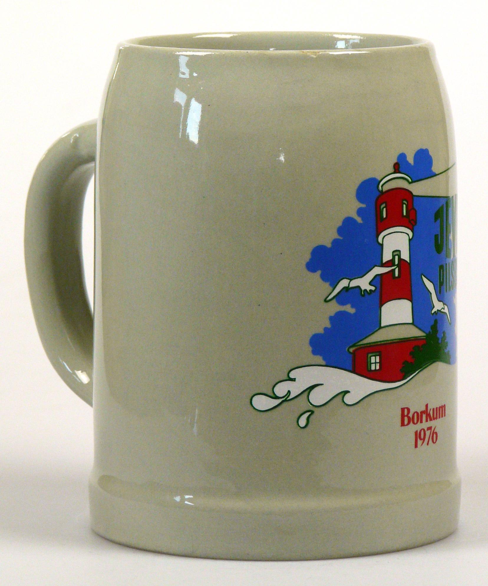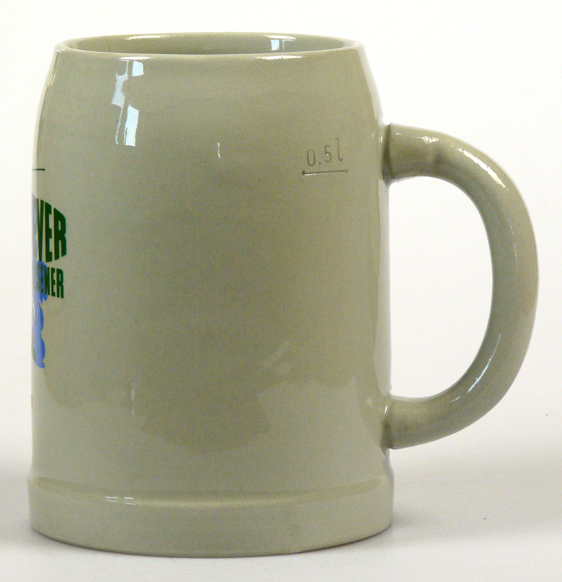 Attribut Wert Alter (min.) Alter (max.) Identifikation (Jever-Fan) ID I001944 / K0050 / B14 Typ Krug Attribute (Allgemein) Form Krug / Seidel Füllstrich geprägt > 0,5l//// Hersteller-Zeichen WW Inhalt (l) 0,50 Logo Pilsener 2 Maße HxBxT (cm) 12,7x9,7x9,7 Material Steingut Ort Borkum > Borkum > Landkreis Leer > Niedersachsen > Deutschland Sorte Pilsener Attribute (Zeitstempel) Eigene 19760000 1976 1976