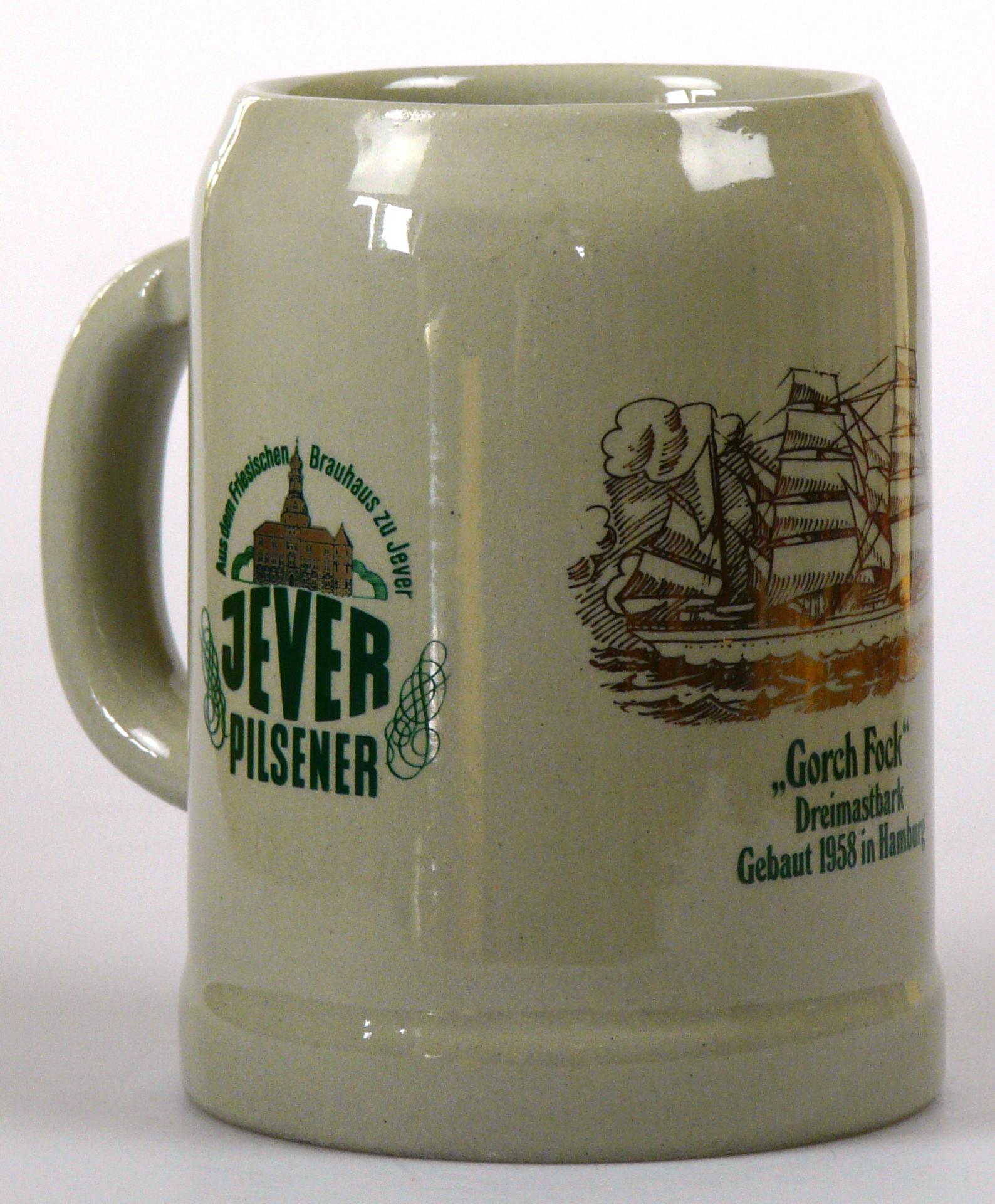 Attribut Wert Alter (min.) Alter (max.) Identifikation (Jever-Fan) ID I001962 / K0068 / B1 Typ Krug Attribute (Allgemein) Form Krug / Seidel Füllstrich geprägt > 0,5l////GERZ Hersteller-Zeichen GERZ Inhalt (l) 0,50 Logo Pilsener 6 Maße HxBxT (cm) 13,2x10x10 Material Steingut Sorte Pilsener