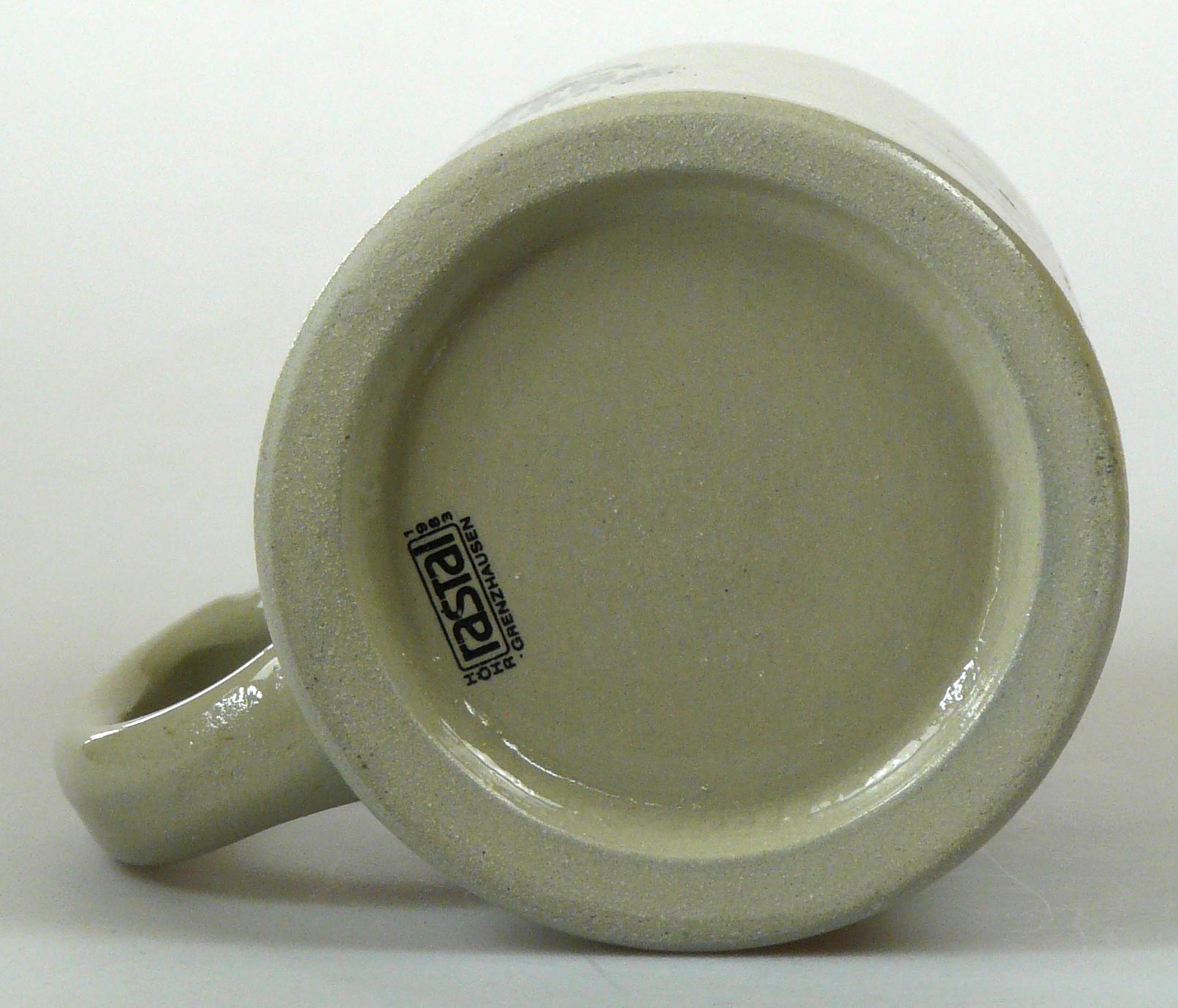 Attribut Wert Alter (min.) Alter (max.) Identifikation (Jever-Fan) ID I001969 / K0075 / B1 Typ Krug Attribute (Allgemein) Form Krug / Seidel Füllstrich geprägt > 0,5l////WW Herstellername Rastal GmbH & Co. KG Hersteller-Zeichen WW Hersteller-Zeichen rastal Inhalt (l) 0,50 Logo Pilsener 6 Maße HxBxT (cm) 13x10x10 Material Steingut Sorte Pilsener Attribute (Zeitstempel) Eigene 19830000 1983 1983