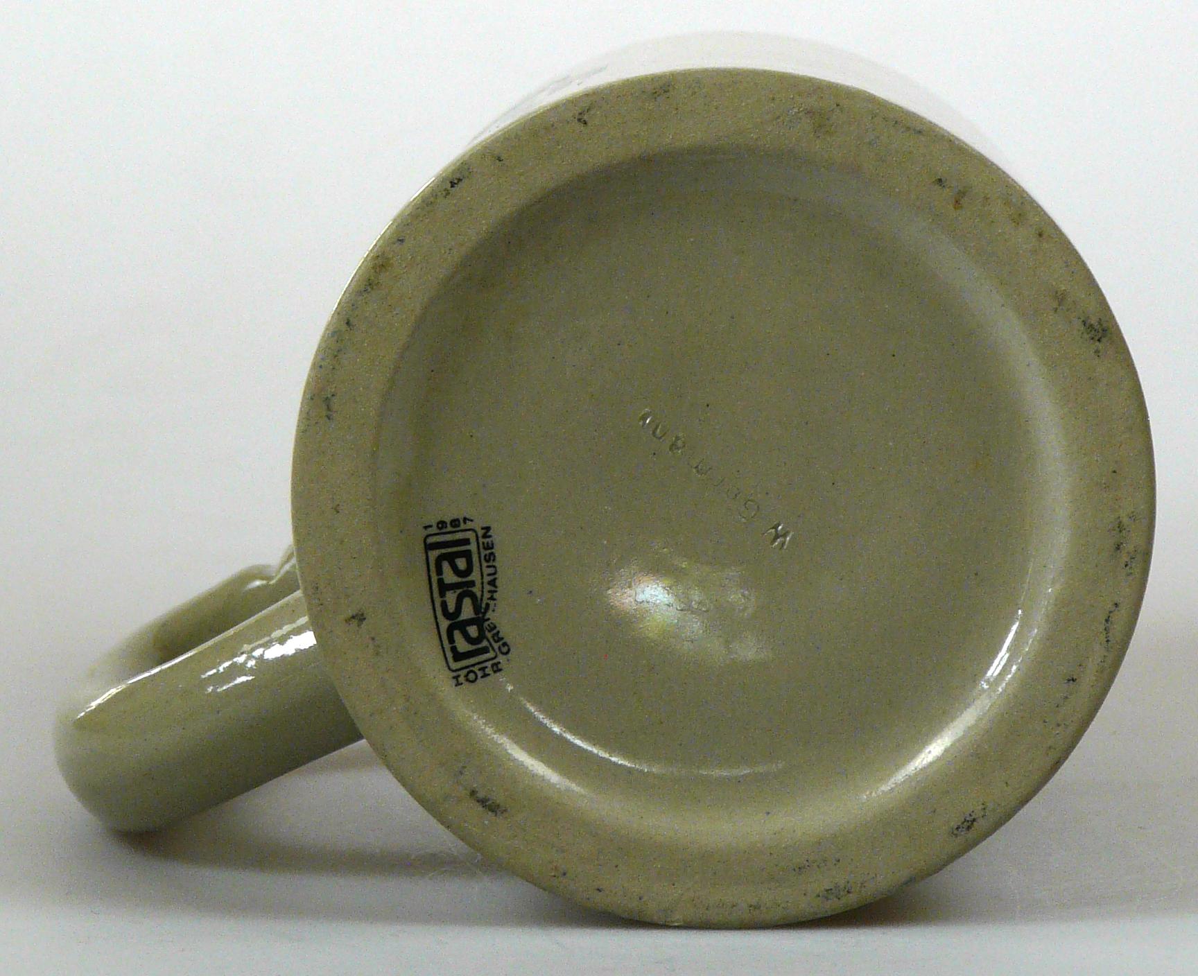 Attribut Wert Alter (min.) Alter (max.) Identifikation (Jever-Fan) ID I001973 / K0079 / B1 Typ Krug Attribute (Allgemein) Form Krug / Seidel Füllstrich geprägt > 0,5l////GERZ Herstellername Rastal GmbH & Co. KG Hersteller-Zeichen GERZ Hersteller-Zeichen rastal Inhalt (l) 0,50 Logo Pilsener 1 Maße HxBxT (cm) 13,2x10x10 Material Steingut Sorte Pilsener Attribute (Zeitstempel) Eigene 19870000 1987 1987