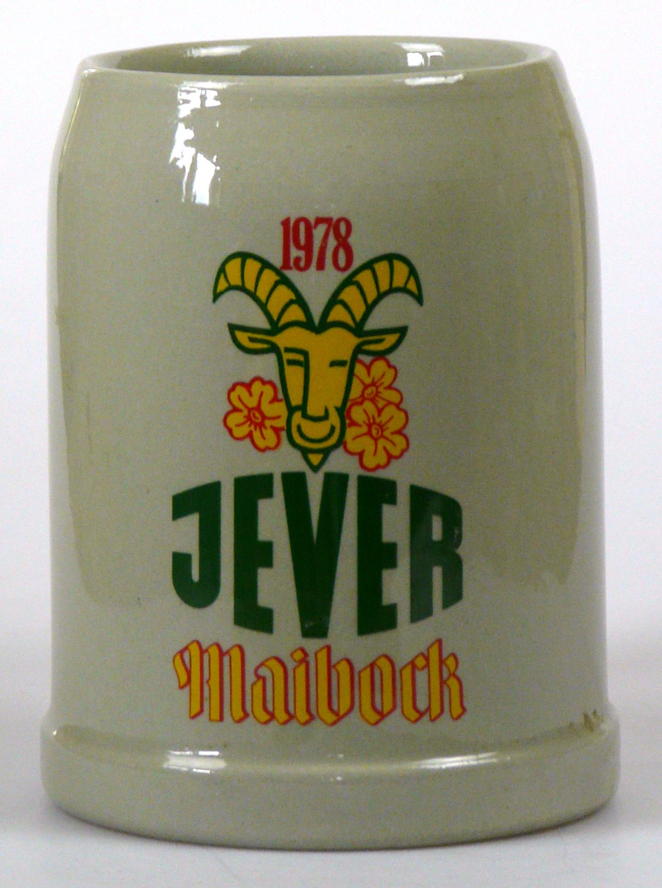 Attribut Wert Alter (min.) Alter (max.) Identifikation (Jever-Fan) ID I001995 / K0101 / B3 Typ Krug Attribute (Allgemein) Form Krug / Seidel Füllstrich geprägt > 0,5l//// Hersteller-Zeichen WW Inhalt (l) 0,50 Logo Maibock 8 Maße HxBxT (cm) 12,8x10x10 Material Steingut Sorte Maibock Attribute (Zeitstempel) Eigene 19780000 1978 1978