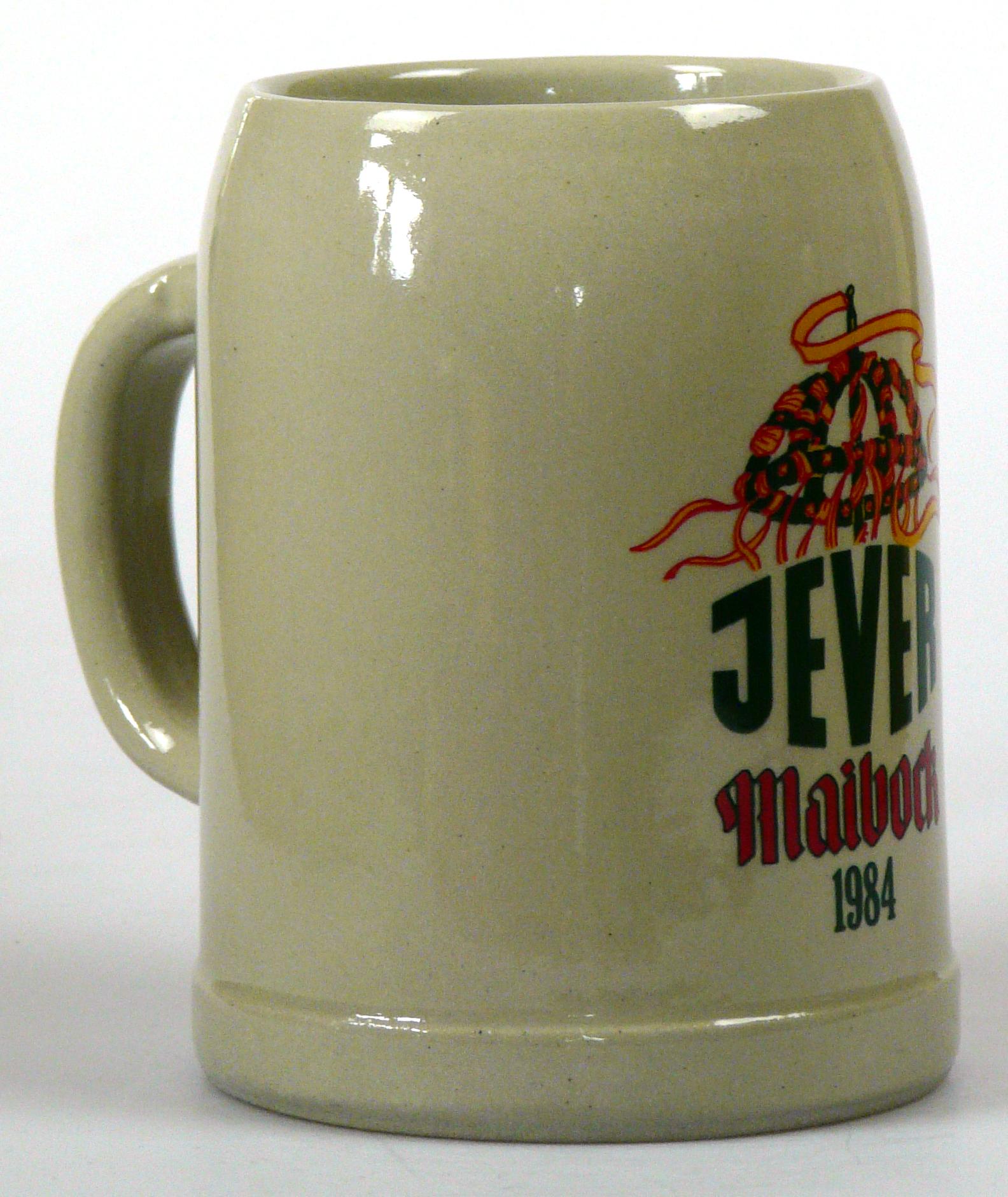 Attribut Wert Alter (min.) Alter (max.) Identifikation (Jever-Fan) ID I002002 / K0108 / B3 Typ Krug Attribute (Allgemein) Form Krug / Seidel Füllstrich geprägt > 0,5l////WW Hersteller-Zeichen WW Inhalt (l) 0,50 Logo Maibock 3 Maße HxBxT (cm) 12,8x9,8x9,8 Material Steingut Sorte Maibock Attribute (Zeitstempel) Eigene 19840000 1984 1984