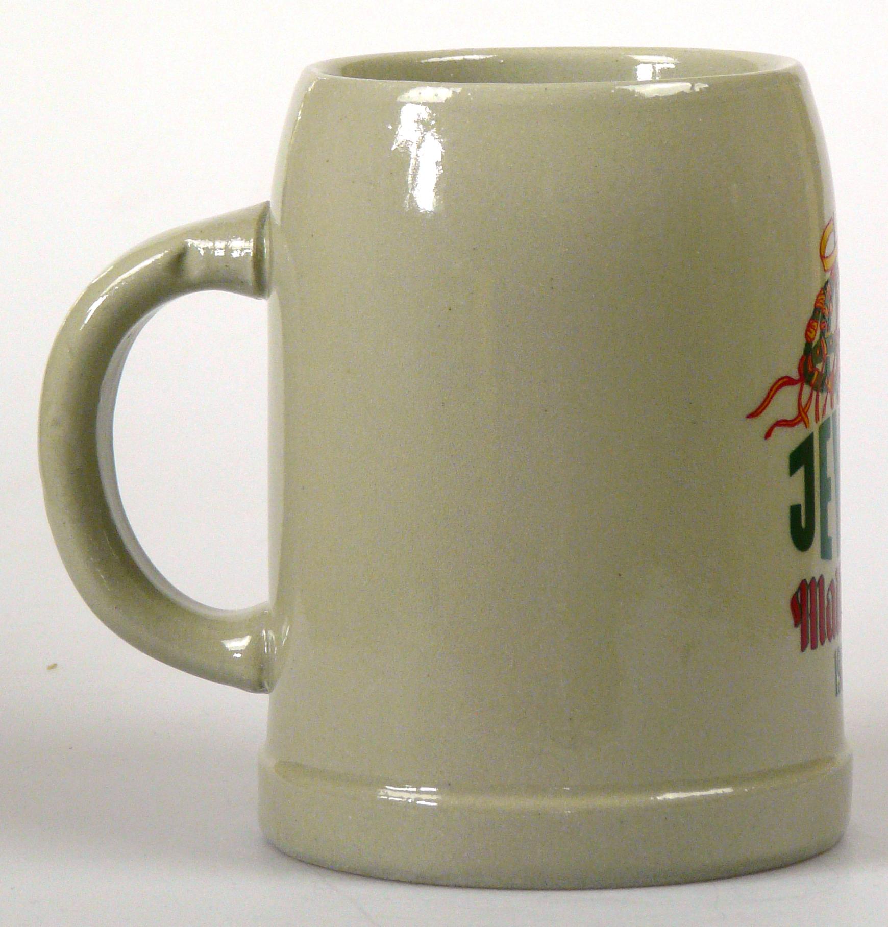 Attribut Wert Alter (min.) Alter (max.) Identifikation (Jever-Fan) ID I002003 / K0109 / B3 Typ Krug Attribute (Allgemein) Form Krug / Seidel Füllstrich geprägt > 0,5l////WW Hersteller-Zeichen WW Inhalt (l) 0,50 Logo Maibock 3 Maße HxBxT (cm) 12,9x9,9x9,9 Material Steingut Sorte Maibock Attribute (Zeitstempel) Eigene 19850000 1985 1985