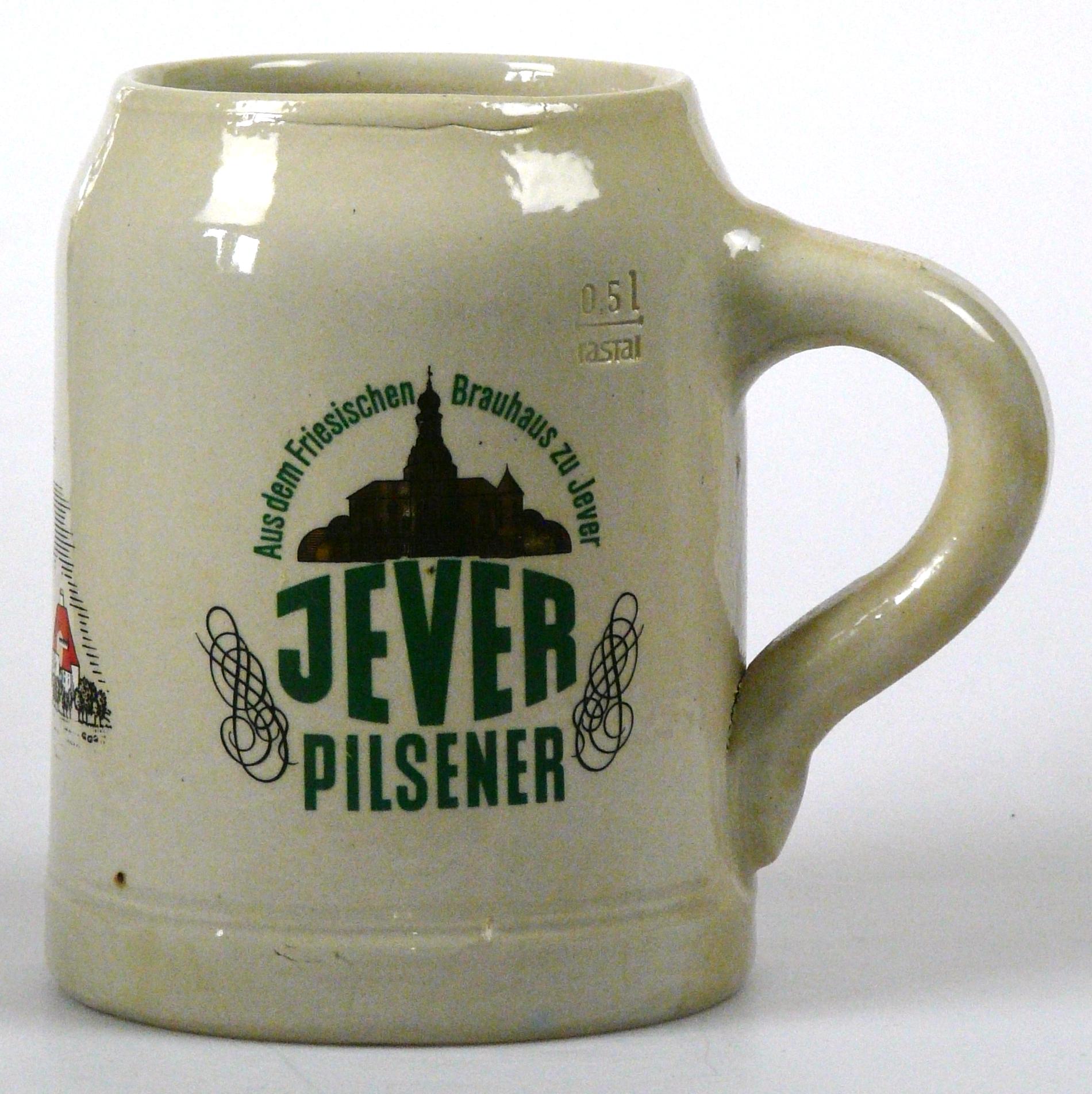 Attribut Wert Alter (min.) Alter (max.) Identifikation (Jever-Fan) ID I002015 / K0121 / B4 Typ Krug Attribute (Allgemein) Form Krug / Seidel Füllstrich geprägt > 0,5l////rastal Herstellername Rastal GmbH & Co. KG Hersteller-Zeichen rastal Inhalt (l) 0,50 Logo Pilsener 6 Maße HxBxT (cm) 12,8x10,1x10,1 Material Steingut Sorte Pilsener