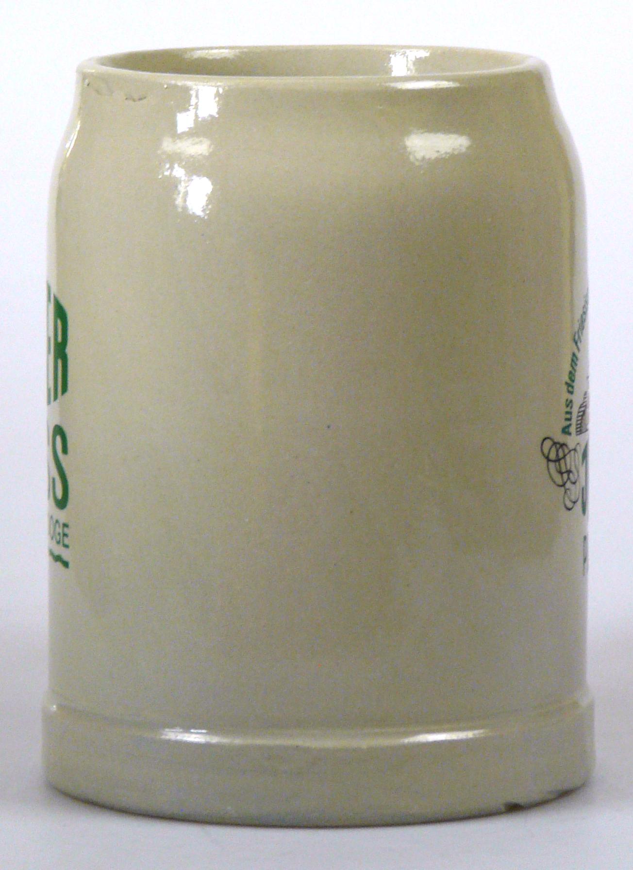Attribut Wert Alter (min.) Alter (max.) Identifikation (Jever-Fan) ID I002042 / K0148 / B6 Typ Krug Attribute (Allgemein) Form Krug / Seidel Füllstrich geprägt > 0,5l////FS Gastronomie Jever Fass Hersteller-Zeichen FS Inhalt (l) 0,50 Logo Pilsener 22 Maße HxBxT (cm) 12,9x10x10 Material Steingut Ort Wangerooge > Wangerooge > Landkreis Friesland > Niedersachsen > Deutschland Sorte Pilsener