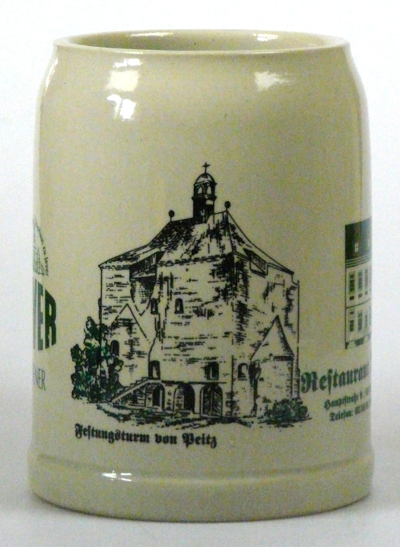 Gemäß Inhaber des Restaurants ist das Herstellungsjahr dieser Krüge 2001, die Auflage ist limitiert auf 300 Stück. Ausgabe anlässlich der 700 Jahrfeier der Fischer und Festungsstadt Peitz, welche 1301 erstmals urkundlich erwähnt wurde.