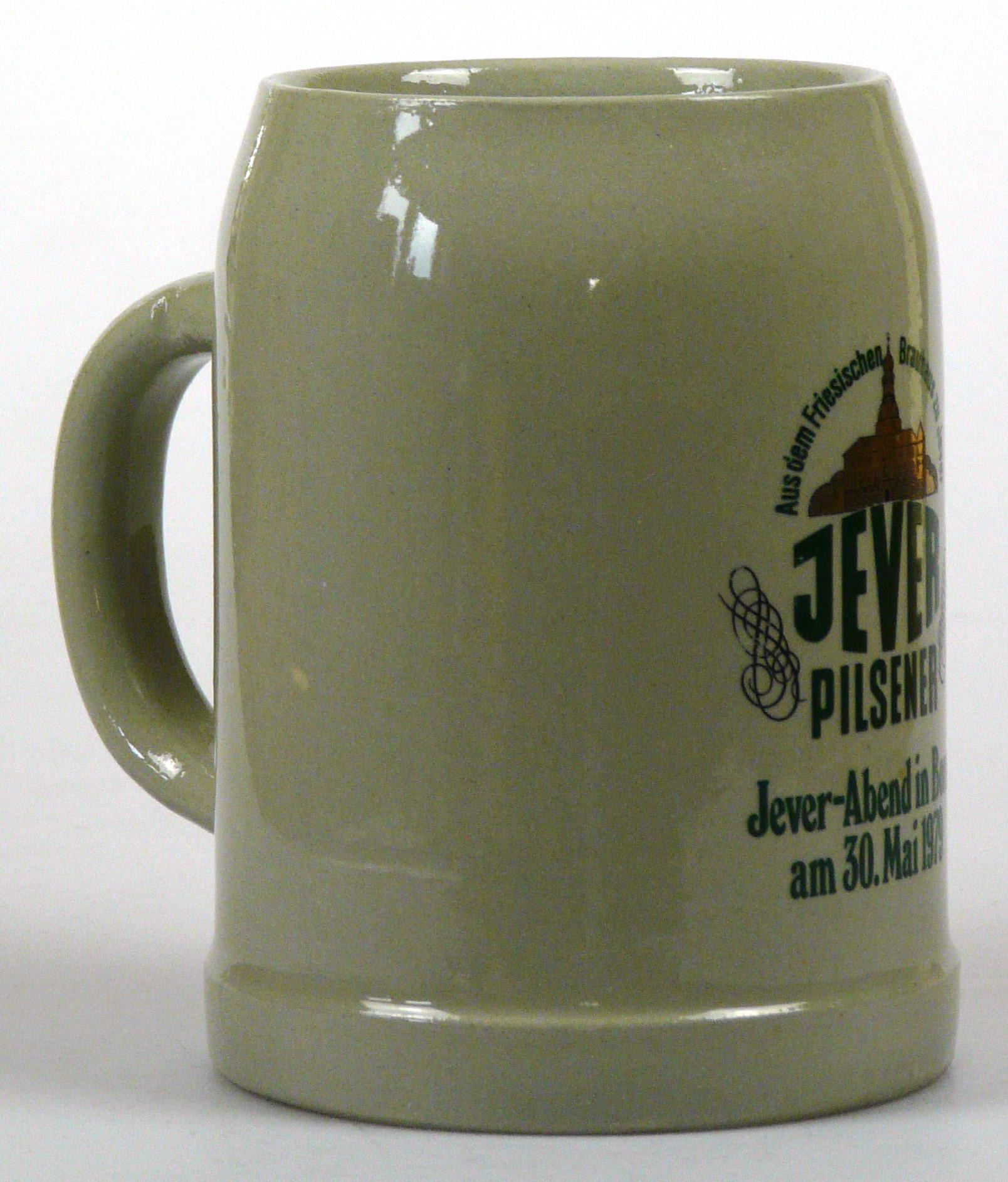 Attribut Wert Alter (min.) Alter (max.) Identifikation (Jever-Fan) ID I002081 / K0178 / B8 Typ Krug Attribute (Allgemein) Event Jever-Abend in Bonn Form Krug / Seidel Füllstrich geprägt > 0,5l//// Hersteller-Zeichen WW Inhalt (l) 0,50 Logo Pilsener 6 Maße HxBxT (cm) 12,9x9,8x9,8 Material Steingut Motiv Rundliche Schrift Ort Bonn > Bonn > Bonn > Nordrhein-Westfalen > Deutschland Sorte Pilsener Attribute (Zeitstempel) Eigene 19790530 30.05.1979 30.05.1979