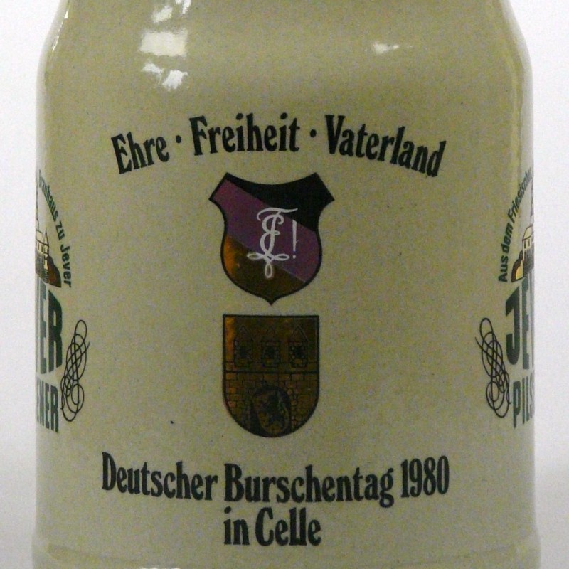 Attribut Wert Alter (min.) Alter (max.) Identifikation (Jever-Fan) ID I002084 / K0181 / B8 Typ Krug Attribute (Allgemein) Event Deutscher Burschentag Form Krug / Seidel Füllstrich geprägt > 0,5l////W Hersteller-Zeichen W Inhalt (l) 0,50 Logo Pilsener 6 Maße HxBxT (cm) 12,9x9,9x9,9 Material Steingut Motiv Rundliche Schrift Ort Celle > Celle > Landkreis Celle > Niedersachsen > Deutschland Sorte Pilsener Attribute (Zeitstempel) Eigene 19800000 1980 1980