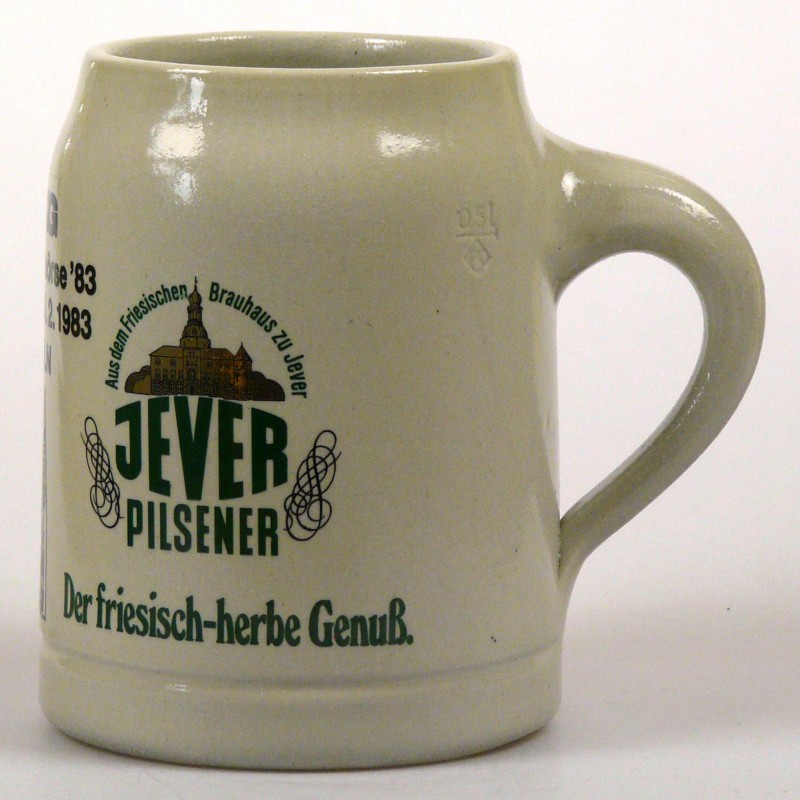 Attribut Wert Alter (min.) Alter (max.) Identifikation (Jever-Fan) ID I002093 / K0190 / B9 Typ Krug Attribute (Allgemein) Event HKG Frühjahrsbörse Form Krug / Seidel Füllstrich geprägt > 0,5l////FS Hersteller-Zeichen FS Inhalt (l) 0,50 Logo Pilsener 6 Maße HxBxT (cm) 12,8x9,9x9,9 Material Steingut Motiv Rundliche Schrift Ort Köln > Köln > Köln > Nordrhein-Westfalen > Deutschland Slogan Der friesisch herbe Genuß Sorte Pilsener Attribute (Zeitstempel) Eigene 19830223, 19830224 23.02.1983 24.02.1983
