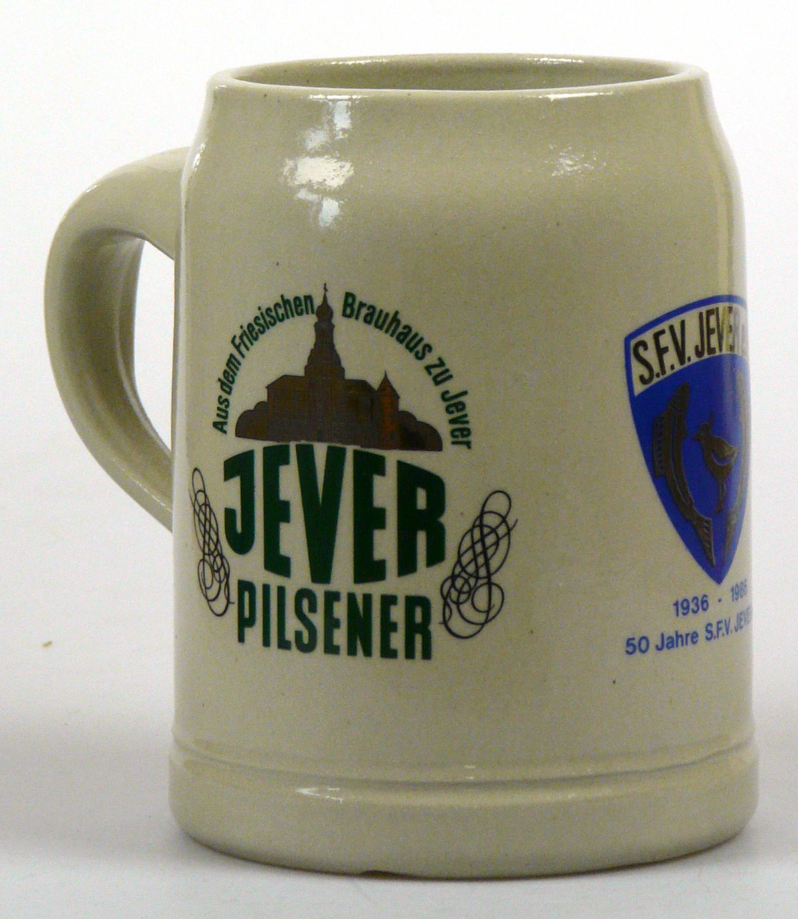 Attribut Wert Alter (min.) Alter (max.) Identifikation (Jever-Fan) ID I002099 / K0196 / B9 Typ Krug Attribute (Allgemein) Event 50 Jahre S.F.V. Jever e.V. Form Krug / Seidel Füllstrich geprägt > 0,5l////FS Herstellername Rastal GmbH & Co. KG Hersteller-Zeichen FS Hersteller-Zeichen rastal Inhalt (l) 0,50 Logo Pilsener 6 Maße HxBxT (cm) 12,7x9,9x9,9 Material Steingut Ort Jever > Jever > Landkreis Friesland > Niedersachsen > Deutschland Sorte Pilsener Attribute (Zeitstempel) Eigene 19860000 1986 1986