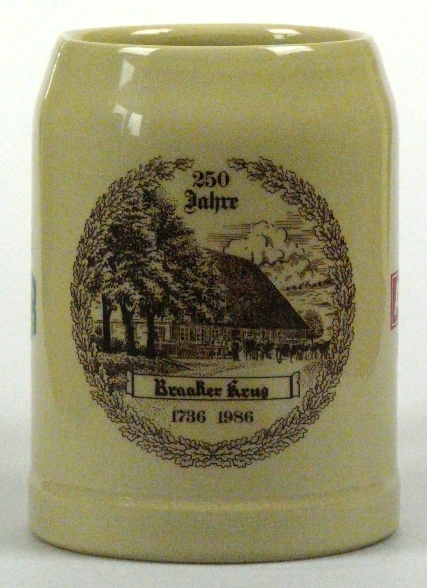 Attribut Wert Alter (min.) Alter (max.) Identifikation (Jever-Fan) ID I002100 / K0197 / B9 Typ Krug Attribute (Allgemein) Event 250 Jahre Braaker Krug Form Krug / Seidel Füllstrich geprägt > 0,5l////sahm Gastronomie Braaker Krug Herstellername SAHM GmbH & Co. KG Hersteller-Zeichen sahm Inhalt (l) 0,50 Logo Pilsener 1 Maße HxBxT (cm) 13,1x9,9x9,9 Material Steingut Sorte Pilsener Attribute (Zeitstempel) Eigene 19860000 1986 1986