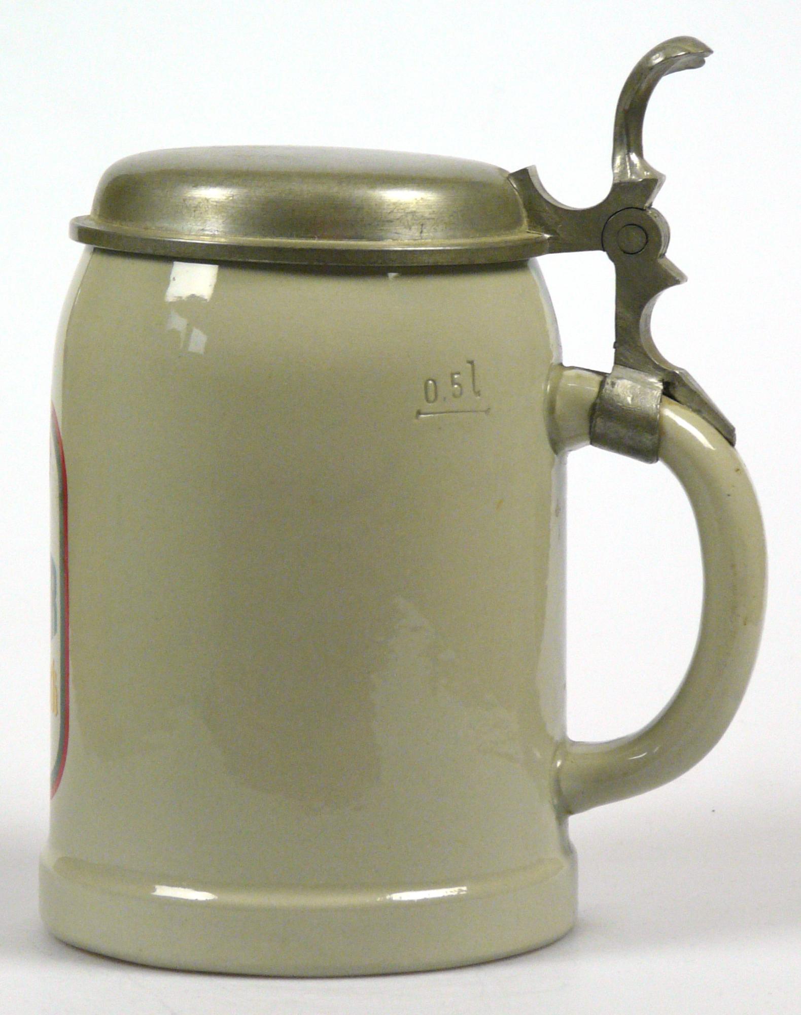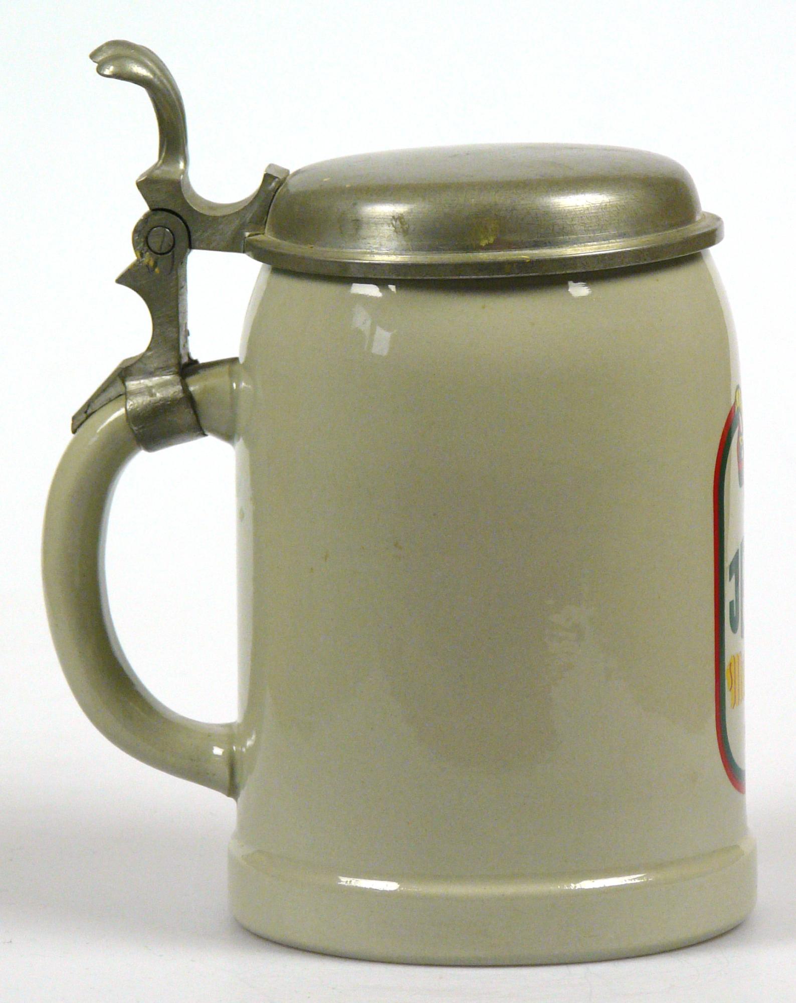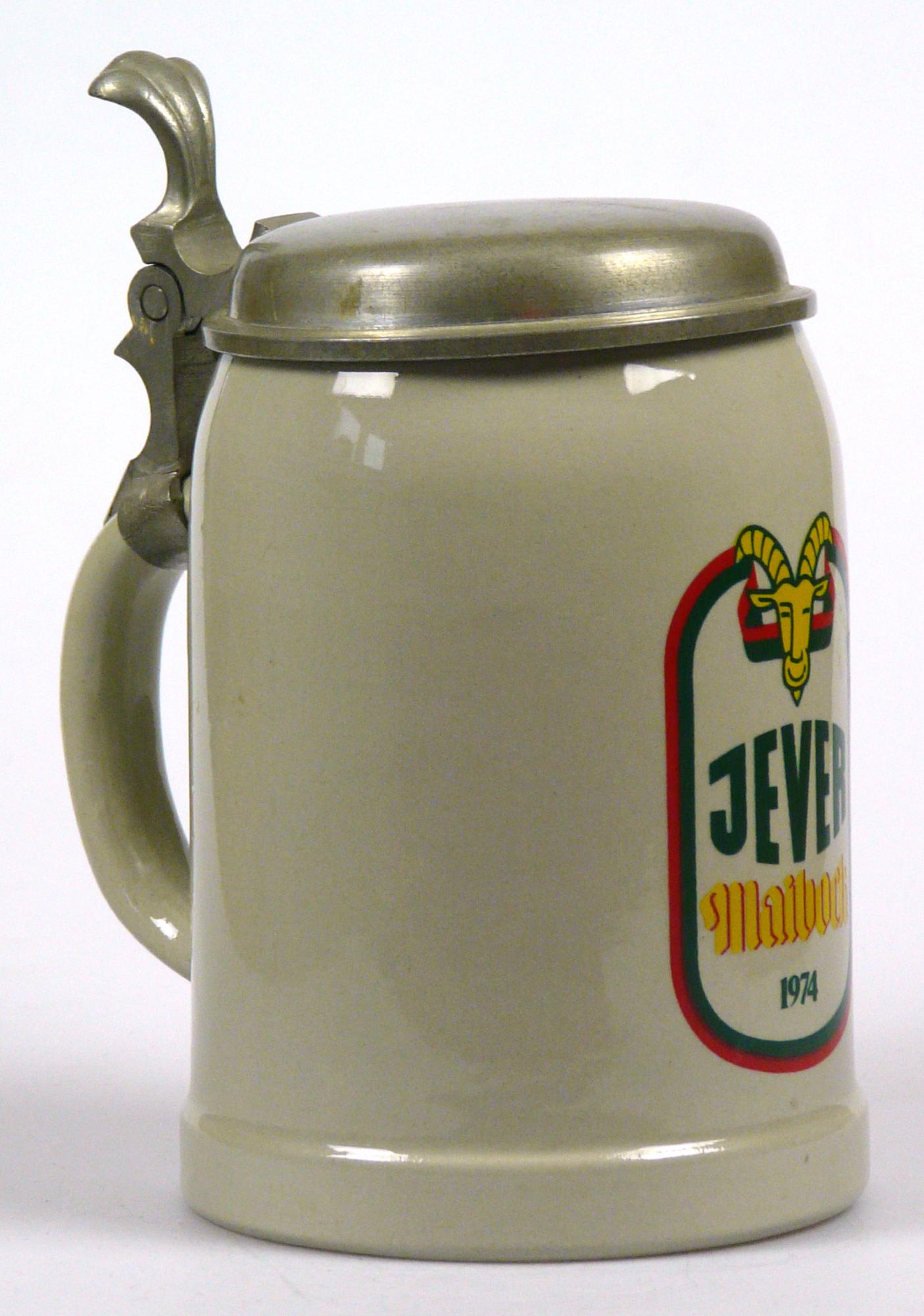 Attribut Wert Alter (min.) Alter (max.) Identifikation (Jever-Fan) ID I002109 / K0204 / B14 Typ Krug Attribute (Allgemein) Form Krug / Seidel Füllstrich geprägt > 0,5l//// Hersteller-Zeichen WW Inhalt (l) 0,50 Logo Maibock 1 Maße HxBxT (cm) 16,6x10,1x10,1 Material Steingut Material Zinn Sorte Maibock Attribute (Zeitstempel) Eigene 19740000 1974 1974