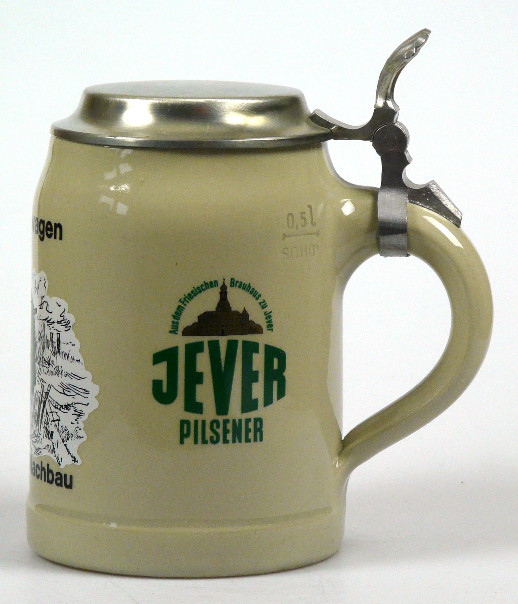 Attribut Wert Alter (min.) Alter (max.) Identifikation (Jever-Fan) ID I002110 / K0205 / B14 Typ Krug Attribute (Allgemein) Form Krug / Seidel Füllstrich geprägt > 0,5l////sahm Herstellername SAHM GmbH & Co. KG Hersteller-Zeichen sahm Inhalt (l) 0,50 Logo Pilsener 1 Maße HxBxT (cm) 16,3x9,9x9,9 Material Steingut Material Zinn Sorte Pilsener