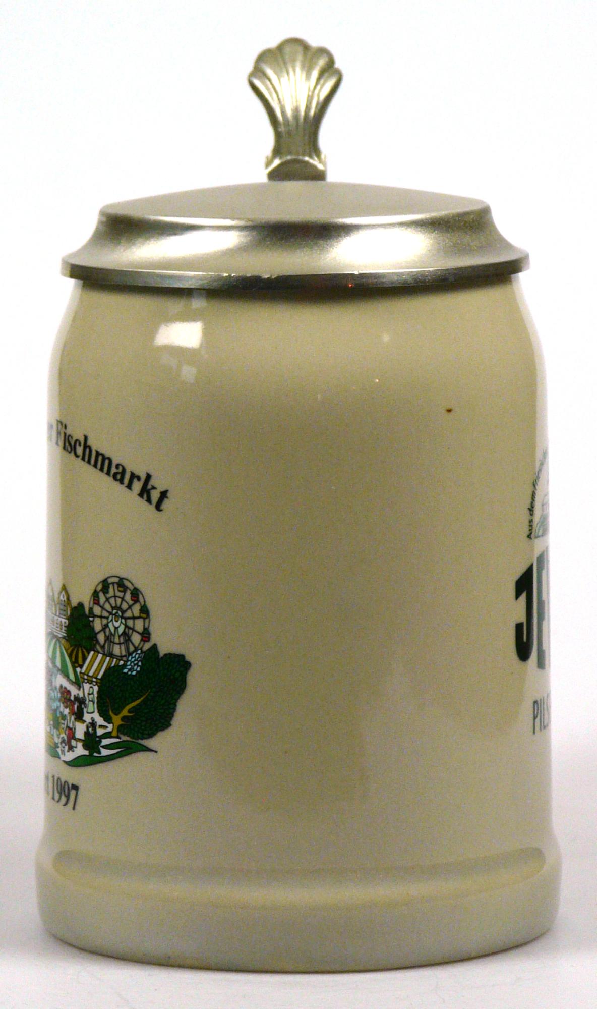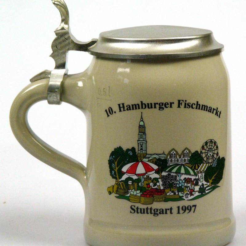 Attribut Wert Alter (min.) Alter (max.) Identifikation (Jever-Fan) ID I002120 / K0215 / B13 Typ Krug Attribute (Allgemein) Event Hamburger Fischmarkt Form Krug / Seidel Füllstrich geprägt > 0,5l////rastal Herstellername Rastal GmbH & Co. KG Hersteller-Zeichen rastal Inhalt (l) 0,50 Logo Pilsener 13 Maße HxBxT (cm) 16,3x9,8x9,8 Material Steingut Material Zinn Ort Stuttgart > Stuttgart > Stuttgart > Baden-Württemberg > Deutschland Sorte Pilsener Attribute (Zeitstempel) Eigene 19970000 1997 1997