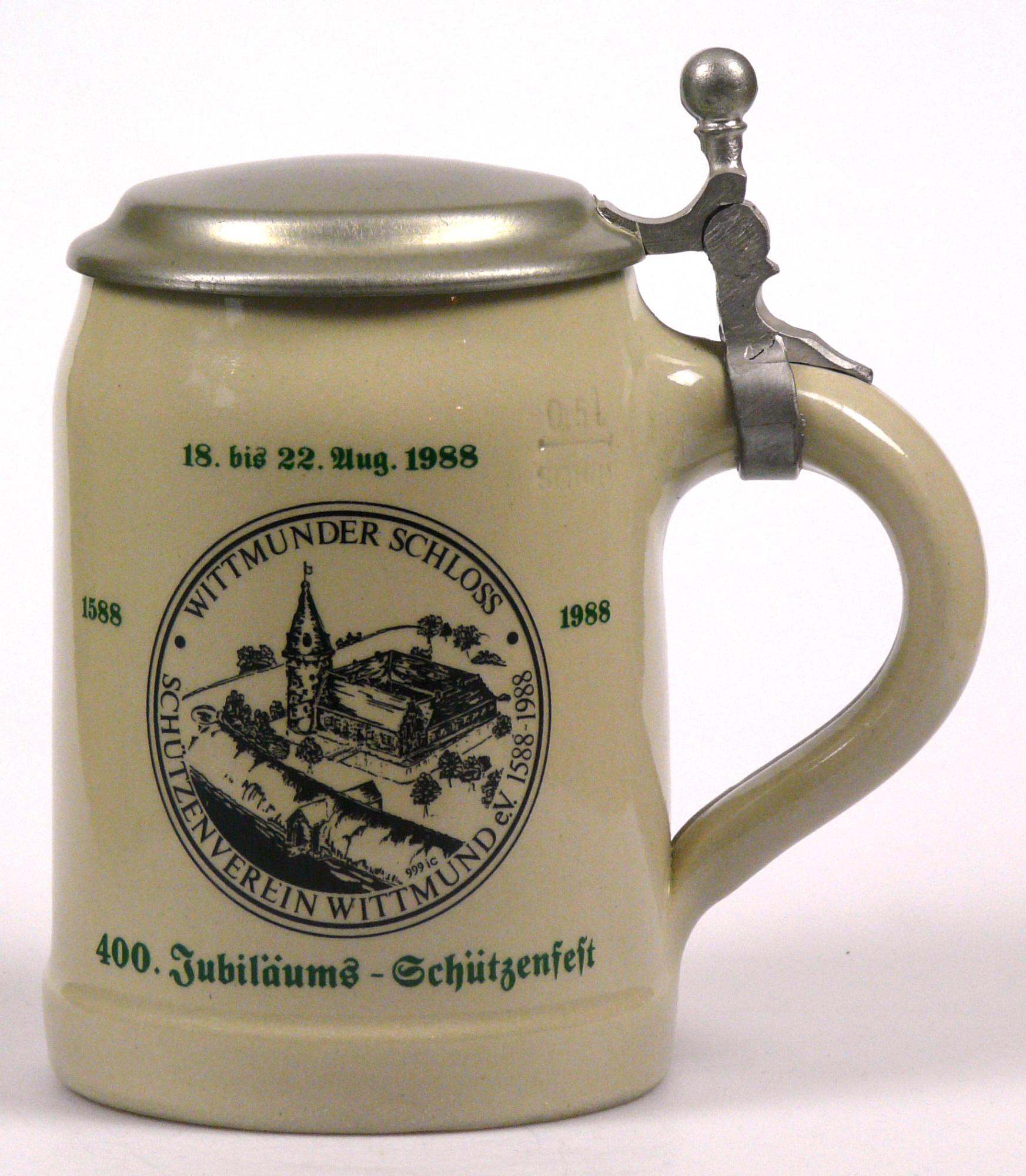 Attribut Wert Alter (min.) Alter (max.) Identifikation (Jever-Fan) ID I002126 / K0221 / B13 Typ Krug Attribute (Allgemein) Event 400. Jubiläums-Schützenfest Form Krug / Seidel Füllstrich geprägt > 0,5l////sahm Herstellername SAHM GmbH & Co. KG Hersteller-Zeichen sahm Inhalt (l) 0,50 Logo Pilsener 1 Maße HxBxT (cm) 16x9,8x9,8 Material Steingut Material Zinn Ort Wittmund > Wittmund > Landkreis Wittmund > Niedersachsen > Deutschland Sorte Pilsener Attribute (Zeitstempel) Eigene 19880818, 19880819, 19880820, 19880821, 19880822 18.08.1988 22.08.1988