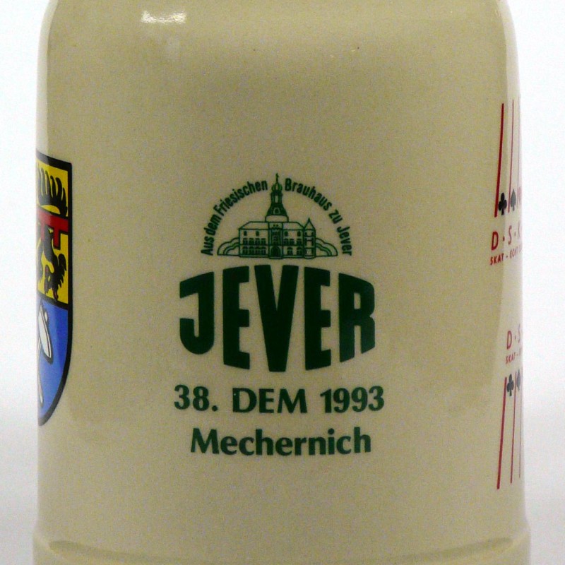 Attribut Wert Alter (min.) Alter (max.) Identifikation (Jever-Fan) ID I002147 / K0242 / B11 Typ Krug Attribute (Allgemein) Event 38. DEM Form Krug / Seidel Füllstrich geprägt > 0,5l////FS Hersteller-Zeichen FS Inhalt (l) 0,50 Logo Dachmarke 3 Maße HxBxT (cm) 12,9x9,9x9,9 Material Steingut Ort Mechernich > Mechernich > Kreis Euskirchen > Nordrhein-Westfalen > Deutschland Sorte (Dachmarke) Attribute (Zeitstempel) Eigene 19930000 1993 1993