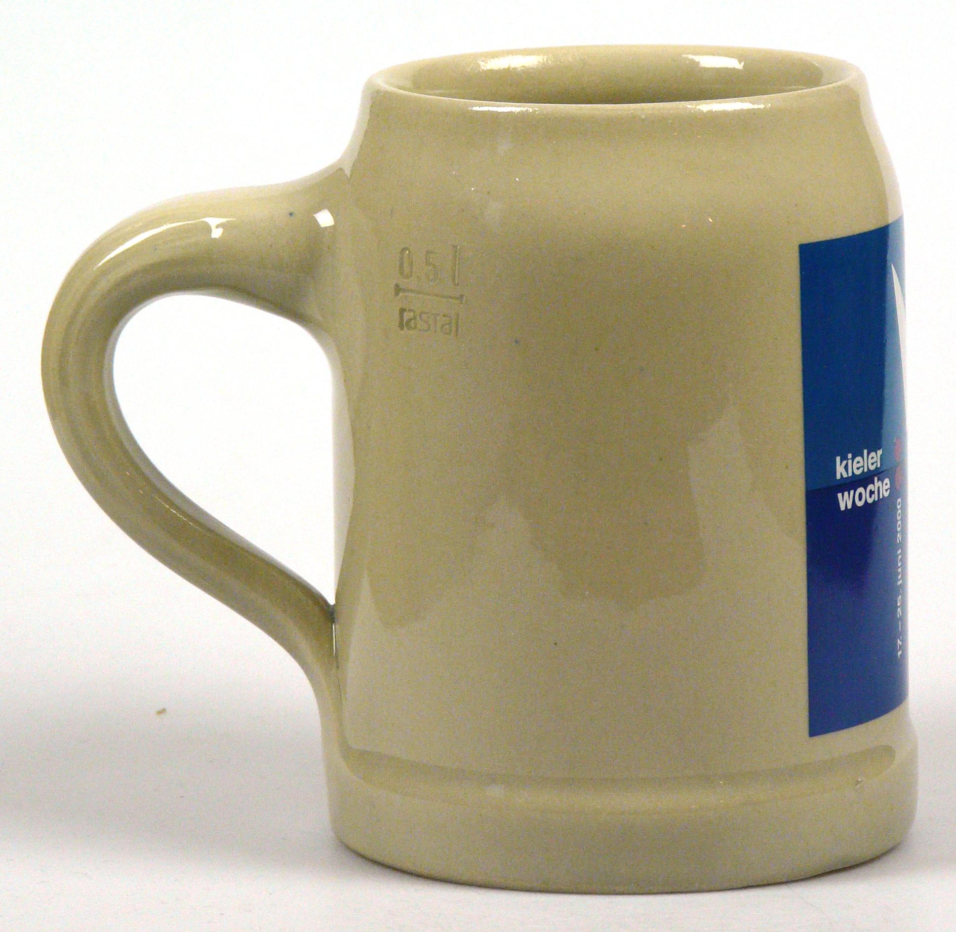 Attribut Wert Alter (min.) Alter (max.) Identifikation (Jever-Fan) ID I002154 / K0249 / B11 Typ Krug Attribute (Allgemein) Event Kieler Woche Form Krug / Seidel Füllstrich geprägt > 0,5l////rastal Herstellername Rastal GmbH & Co. KG Hersteller-Zeichen rastal Inhalt (l) 0,50 Logo Dachmarke 3 Maße HxBxT (cm) 12,7x9,8x9,8 Material Steingut Ort Kiel > Kiel > Kiel > Schleswig-Holstein > Deutschland Sorte (Dachmarke) Attribute (Zeitstempel) Eigene 20000617, 20000618, 20000619, 20000620, 20000621, 20000622, 20000623, 20000624, 20000625 17.06.2000 25.06.2000