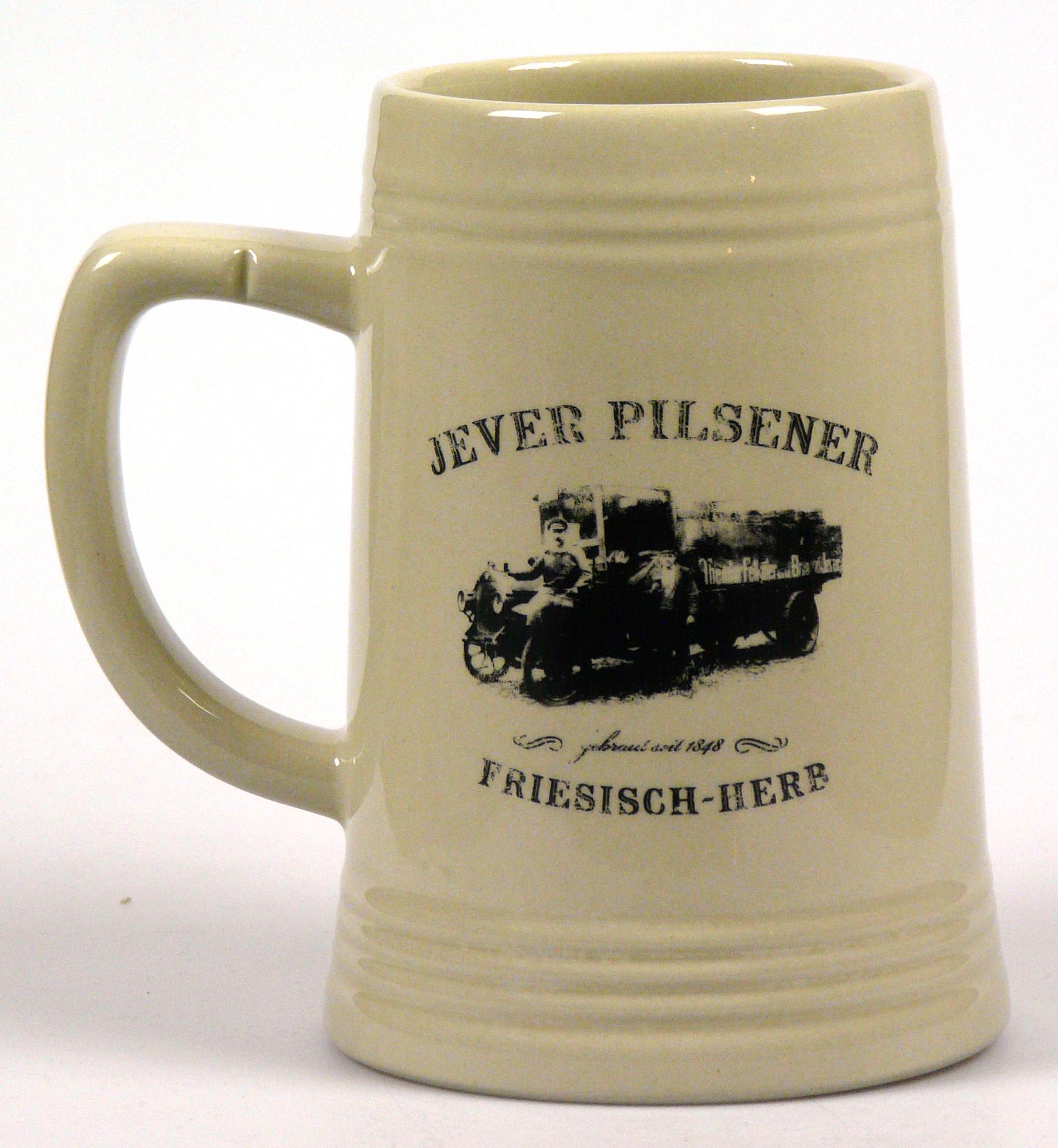 Attribut Wert Alter (min.) Alter (max.) Identifikation (Jever-Fan) ID I002160 / K0255 / B10 Typ Krug Attribute (Allgemein) Form Krug / Seidel Füllstrich geprägt > 0,5l////F. Herb Hersteller-Zeichen F. Herb Inhalt (l) 0,50 Maße HxBxT (cm) 14,8x10,6x10,6 Material Steingut Slogan Friesisch herb Sorte (Dachmarke) Attribute (Zeitstempel) Eigene 20121200 12/2012 12/2012