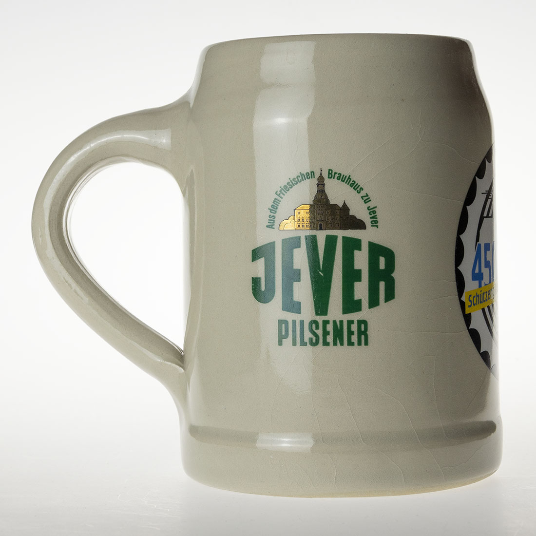 Attribut Wert Alter (min.) Alter (max.) Identifikation (Jever-Fan) ID I002182 / K0277 / B20 Typ Krug Attribute (Allgemein) Event 450 Jahre Schützengilde Buxtehude Form Krug / Seidel Füllstrich geprägt > 0,5l////sahm Herstellername SAHM GmbH & Co. KG Hersteller-Zeichen sahm Inhalt (l) 0,50 Logo Pilsener 1 Maße HxBxT (cm) 13,2x10x10 Material Steingut Ort Buxtehude > Buxtehude > Landkreis Stade > Niedersachsen > Deutschland Sorte Pilsener Attribute (Zeitstempel) Eigene 19890000 1989 1989