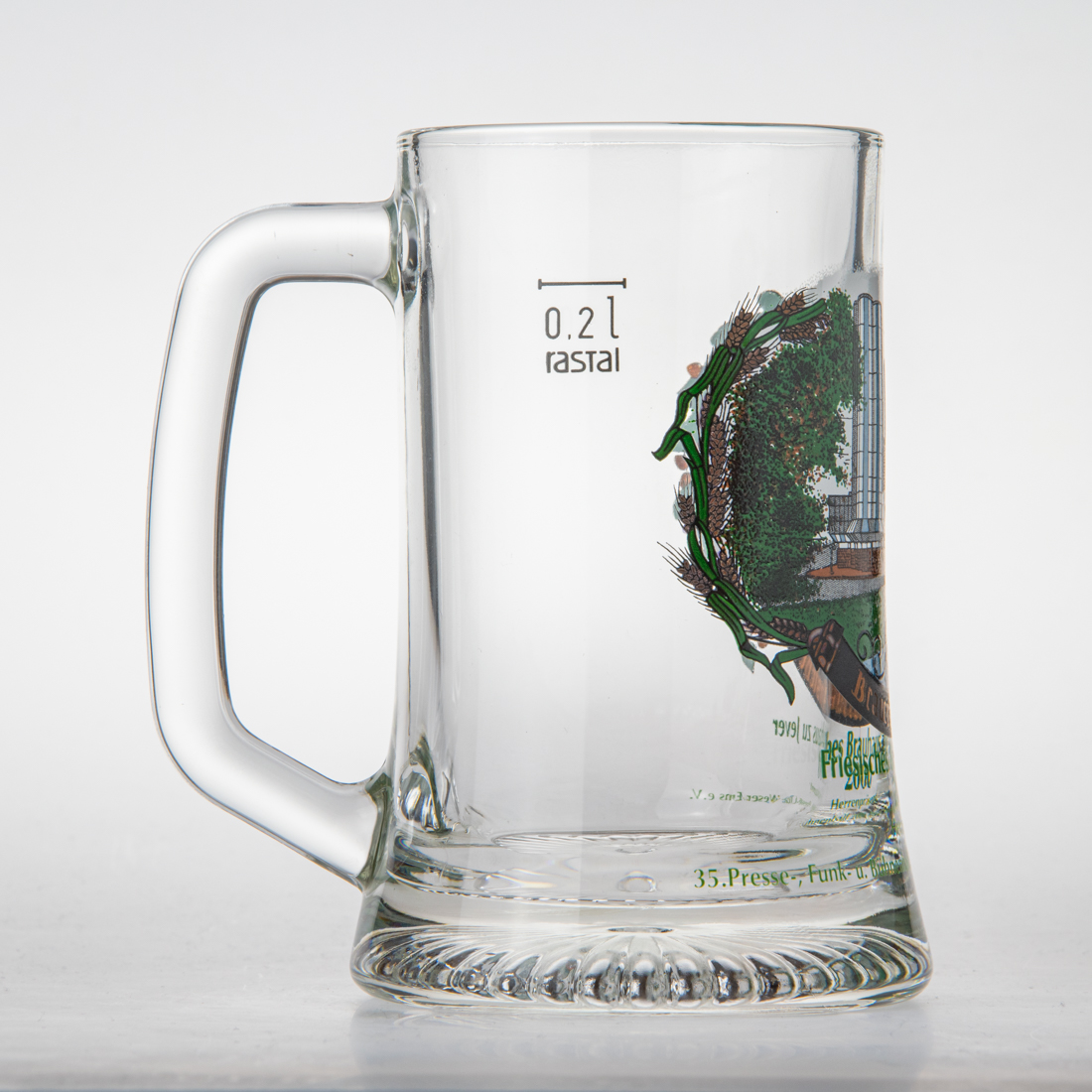 Attribut Wert Alter (min.) Alter (max.) Identifikation (Jever-Fan) ID I002282 / G0012 / B33 Typ Glas Attribute (Allgemein) Event Presse-, Funk- und Bühnenball Form Krug / Seidel Füllstrich gedruckt (schwarz) > ////0,2l rastal Herstellername Rastal GmbH & Co. KG Hersteller-Zeichen rastal Inhalt (l) 0,20 Maße HxBxT (cm) 11,9x7,9x7,9 Material Glas Sorte (Dachmarke) Attribute (Zeitstempel) Eigene 20000000 2000 2000