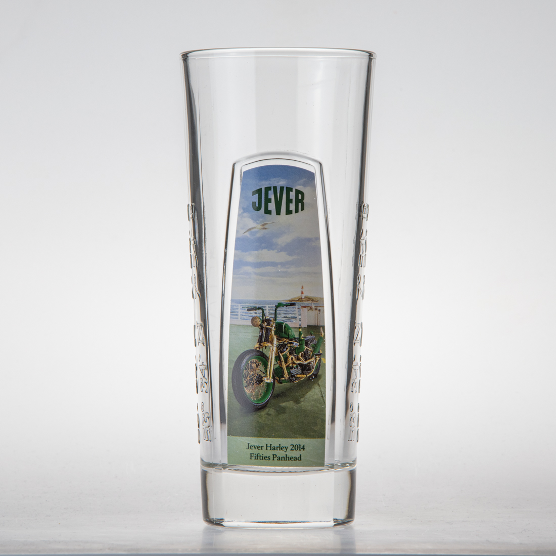 Die Bikes wurden im Auftrag von Jever hergestellt und im Rahmen eines Preisausschreibens verlost. Dieses Glas wurde als Kastenbeilage verschenkt und zeigt eines der zu gewinnenden Bikes.