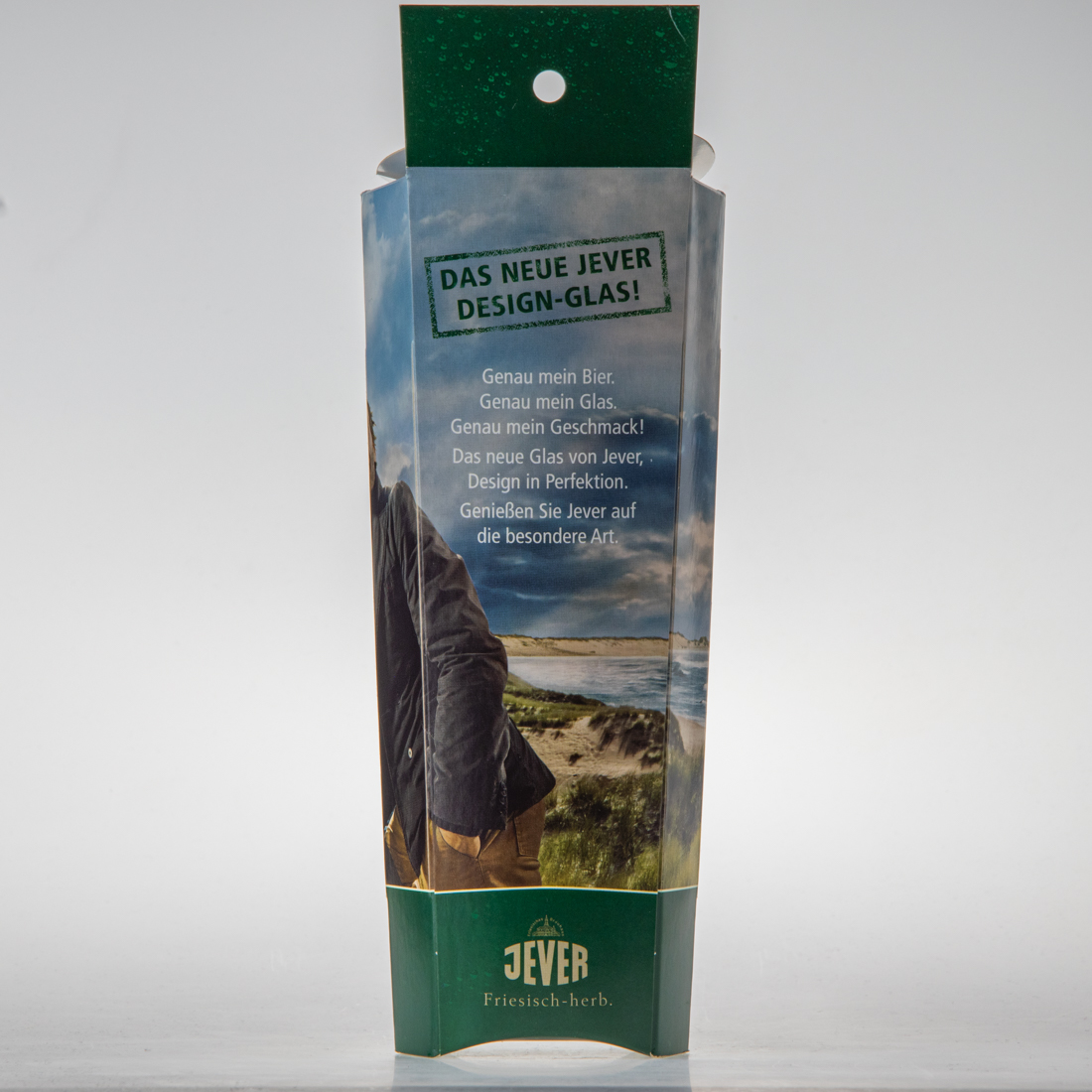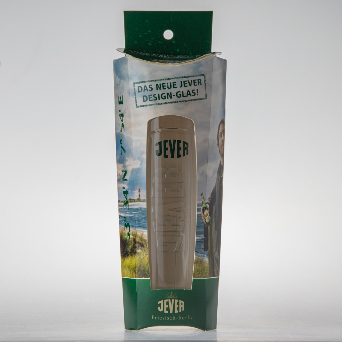 Das Glas wurde zunächst als Kastenbeilage verschenkt und danach im Jever-Shop verkauft.
