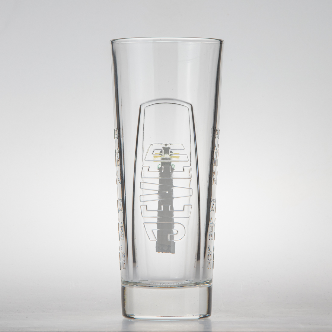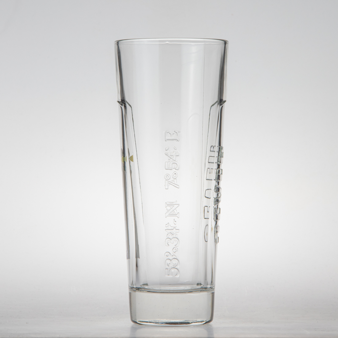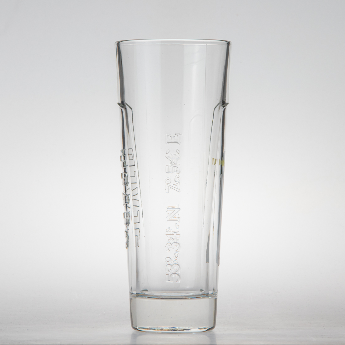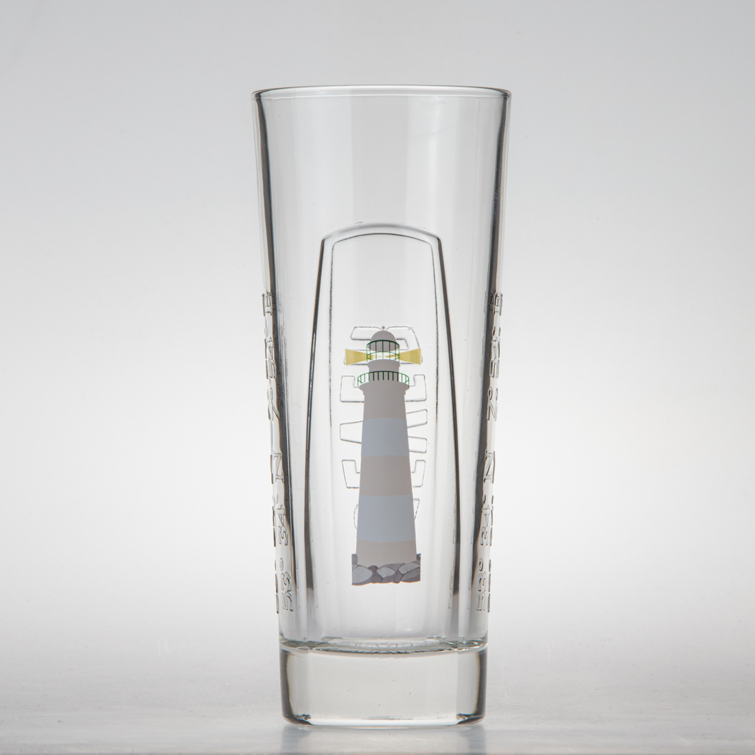 Der Leuchtturm auf der Vorderseite wird sichtbar bzw. unsichtbar, je nach Temperatur des Glases. Das Glas wurde an Gastronomen verschenkt.
