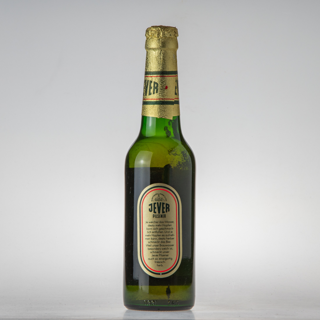 JEVER / FRIESISCHE BRAUKUNST / Aus dem Friesischen Brauhaus zu Jever / JEVER / PILSENER / friesisch-herb / AUS DEM HERZEN FRIESLANDS / alc. 4,9% vol PFANDFLASCHE e 0,33l / Mindestens haltbar bis Ende: