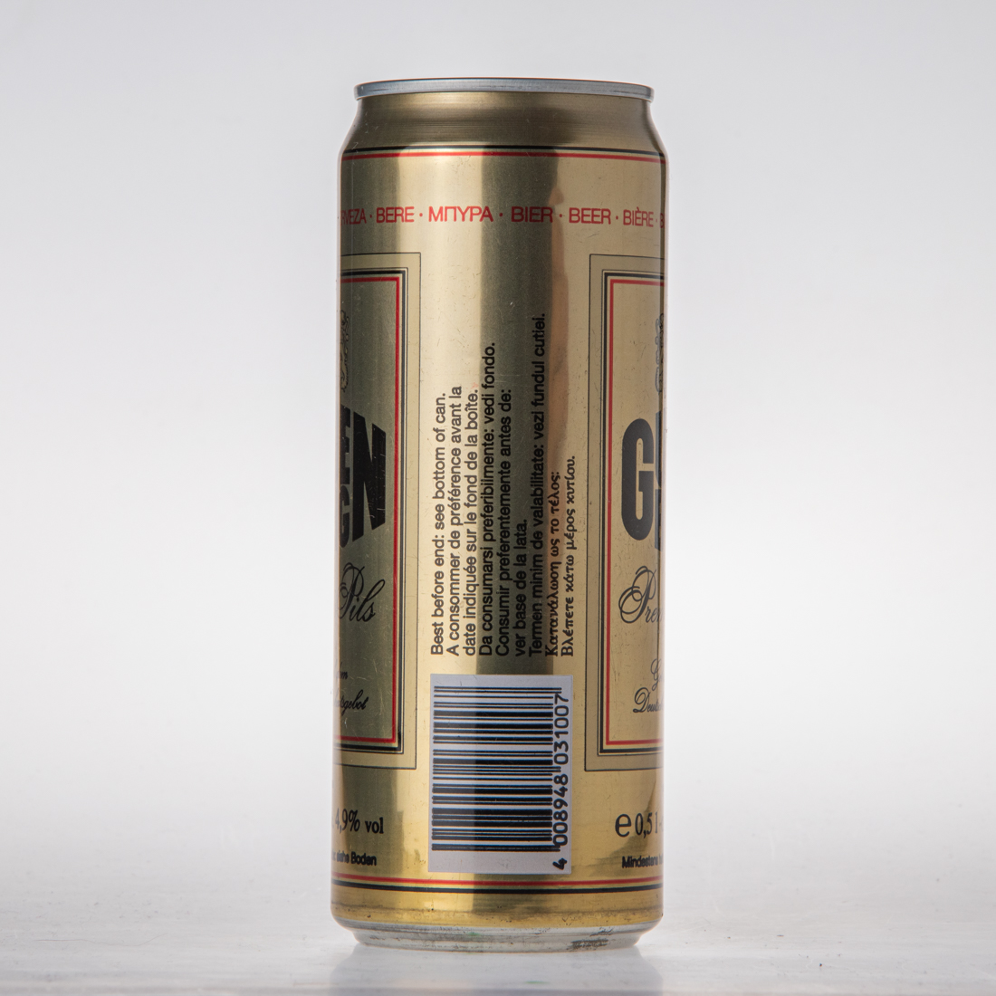 Best before end: see bottom of can. / A consommer de preference avant la date inliquee sur le fond de la boite / Da consumarsi preferentemente antes de: ver base de la lata / Termen minim de valabilitate: vezi fundul cutiel / … / 4 008949 031007 / DER GRÜNE PUNKT / ACC / Stammwürze 11,5°, Ext. sec. prim. 11,5%, Gradi saccr. 12,0, 1046-1051°O.G., e 0,5l - 500ml - 50cl, 16,9 fl. oz. US, 17,6 fl. oz. imp. (für Österreich: Schankbier), …, BAVARIA-ST. PAULI-BRAUEREI AG, 20359 Hamburg, Germany / DOSEN RECYCLING