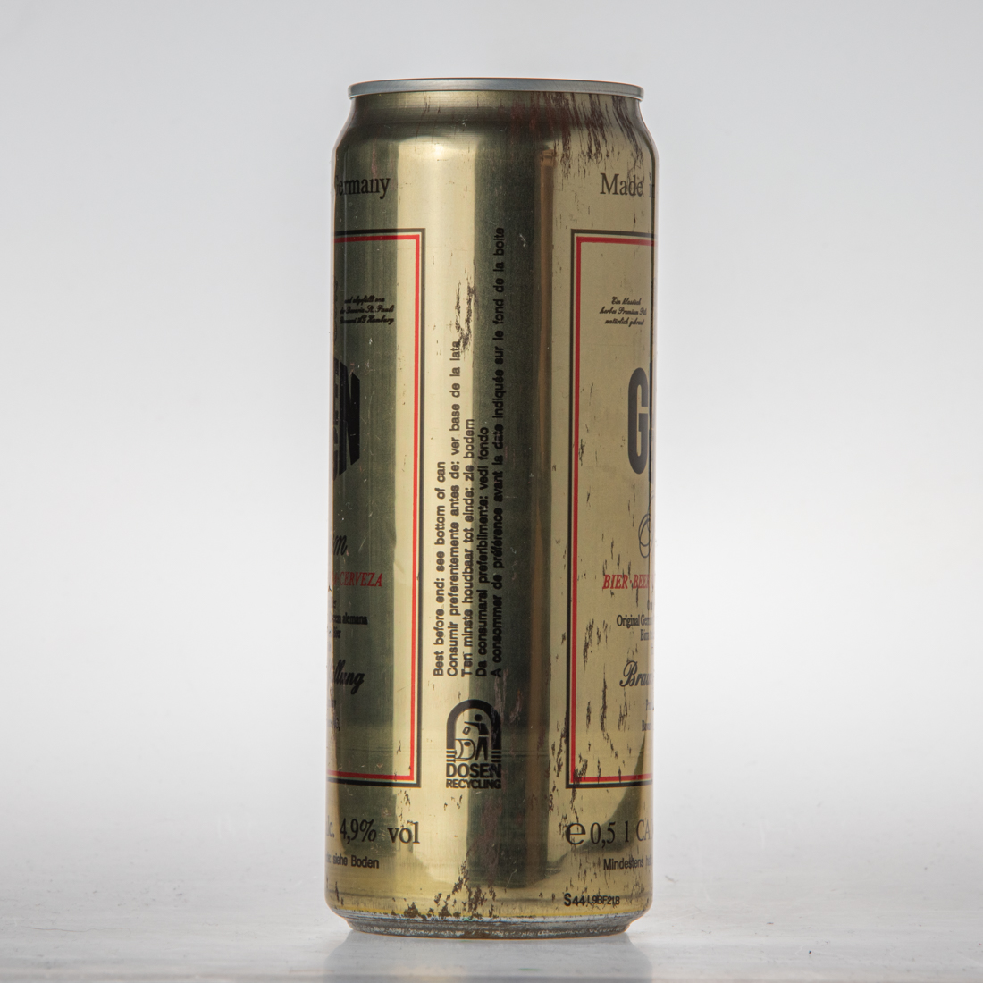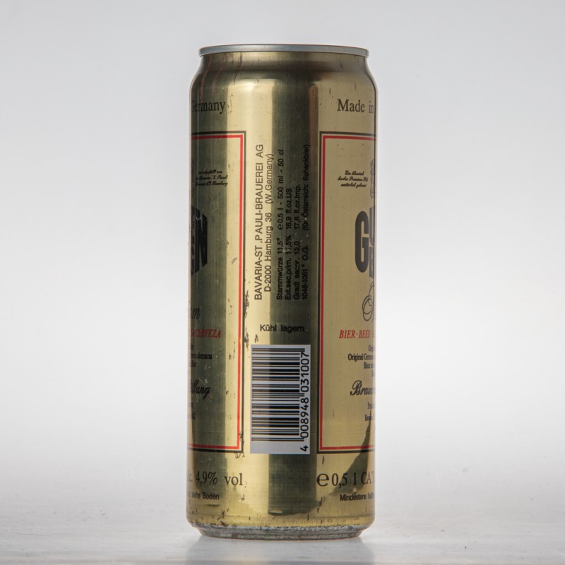 Best before end: see bottom of can Consumir preferentemente antes de: ver base de la lata Ten minste houdbaar tot einde: zie bodem Da consumarsi preferibilmente: vedi fondo A consommer de preference avant la date indiquee sur le fond de la boite / DOSEN RECYCLING / BAVARIA-ST.PAULI-BRAUEREI AG D-2000 Hamburg 36 (W. Germany) / Stammwürze 11,5° Ext.sec.prim. 11,5% Gradi saccr. 12,0 1046-1051° e 0,5l 500ml 50cl 16,9 fl.oz.US 17,6 fl.oz.imp. (für Österreich: Schankbier) / 4 008948 031007