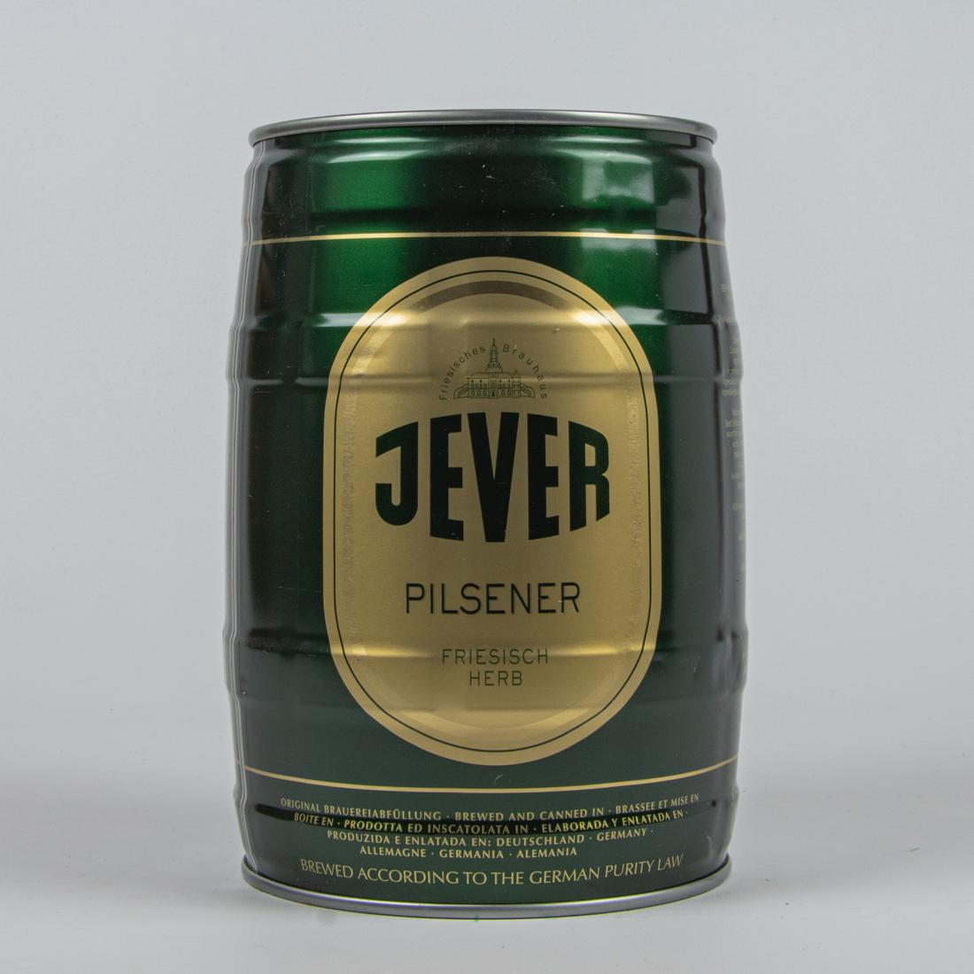 Friesisches Brauhaus / JEVER / PILSENER / FRIESISCH HERB / ORIGINAL BRAUEREIABFÜLLUNG BREWED AND CANNED IN BRASSEE ET MISE EN BOITE EN PRODOTTA ED INSCATOLATA IN ELABORADA Y ENLATADA EN PRODUZIDA E ENLATADA EN … DEUTSCHAND, GERMANY ALLEMAGNE, GERMANIA, ALEMANIA … / BREWED ACCORDING TO THE GERMAN PURITY LAW /