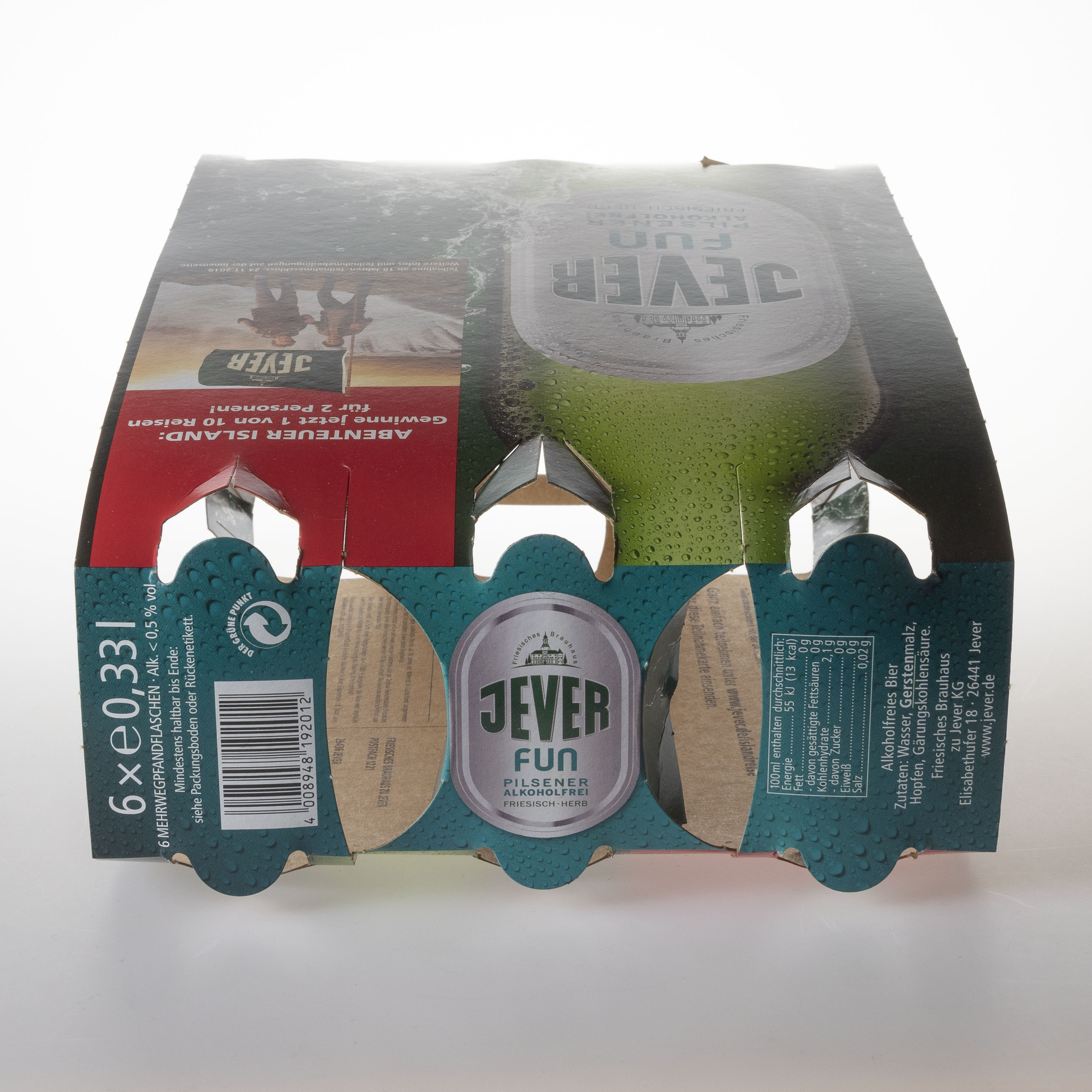 Attribut Wert Alter (min.) Alter (max.) Identifikation (Jever-Fan) ID I003002 / S0503 / Typ Flaschen-Sixpack Attribute (Allgemein) Logo Fun 2 Material Papier/Pappe Name (Mutter) Radeberger Gruppe KG Slogan Friesisch herb Sorte Fun Attribute (Zeitstempel) Eigene 20191124 24.11.2019 24.11.2019