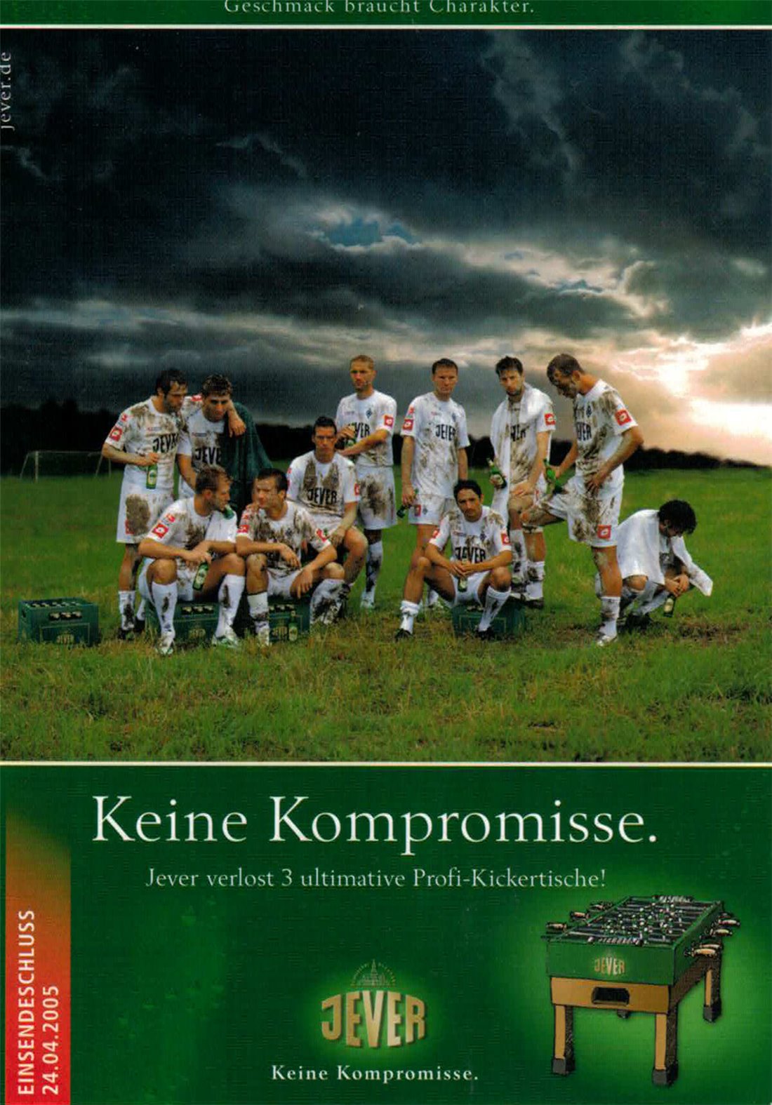 Geschmack braucht Charakter. / jever.de / Keine Kompromisse. / Jever verlost 3 ultimative Profi-Kickertische! / EINSENDESCHLUSS 24.04.2005 / Friesisches Brauhaus / JEVER / Jever. Keine Kompromisse.