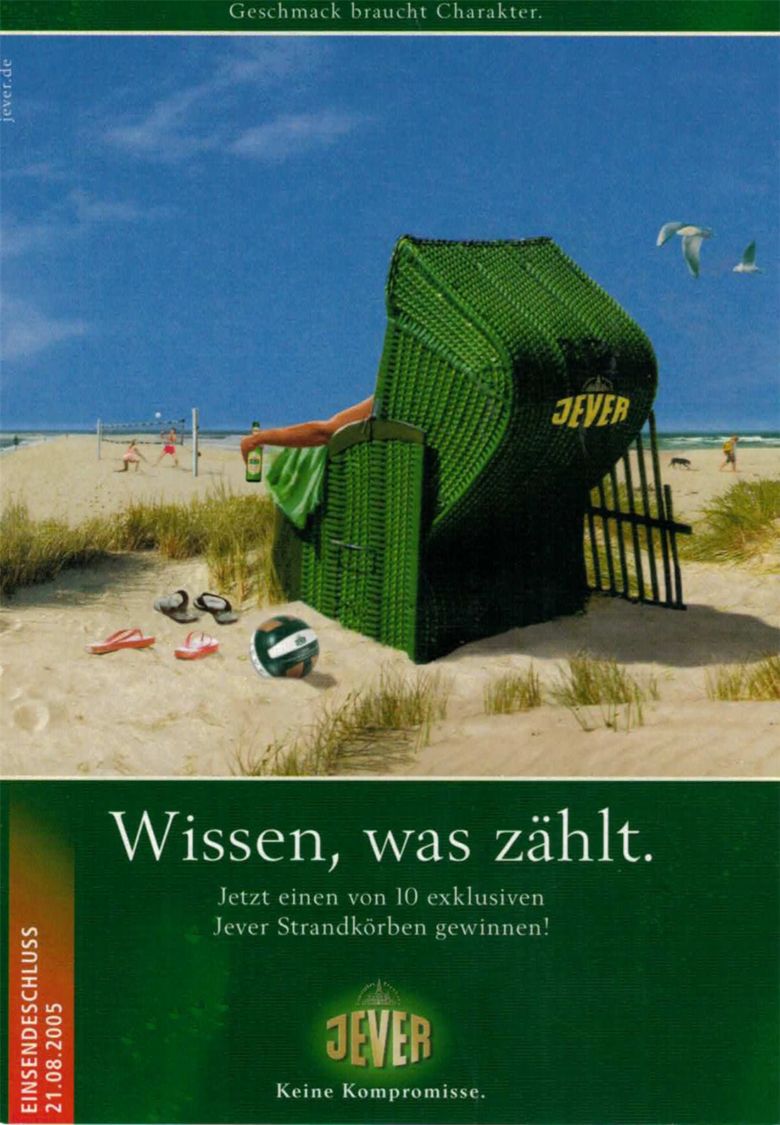Geschmack braucht Charakter. / jever.de / Wissen, was zählt. / Jetzt einen von 10 exklusiven Jever Strandkörben gewinnen! / EINSENDESCHLUSS 21.08.2005 / Friesisches Brauhaus / JEVER / Jever. Keine Kompromisse.
