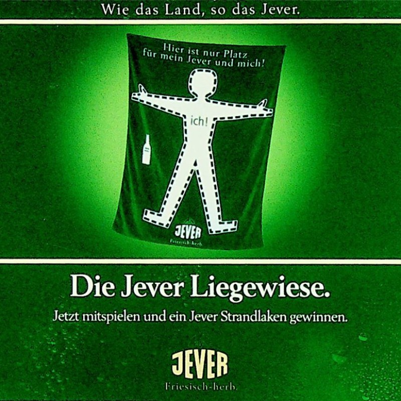 Wie das Land, so das Jever. / Die Jever Liegewiese. / Jetzt mitspielen und ein Jever Strandlaken gewinnen. / Friesisches Brauhaus / JEVER / Friesisch-herb.