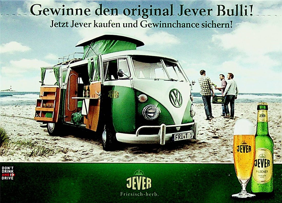 Gewinne den original Jever Bulli! / Jetzt Jever kaufen und Gewinnchance sichern! / DON’T DRINK AND DRIVE / Friesisches Brauhaus / JEVER / Friesisch-herb.