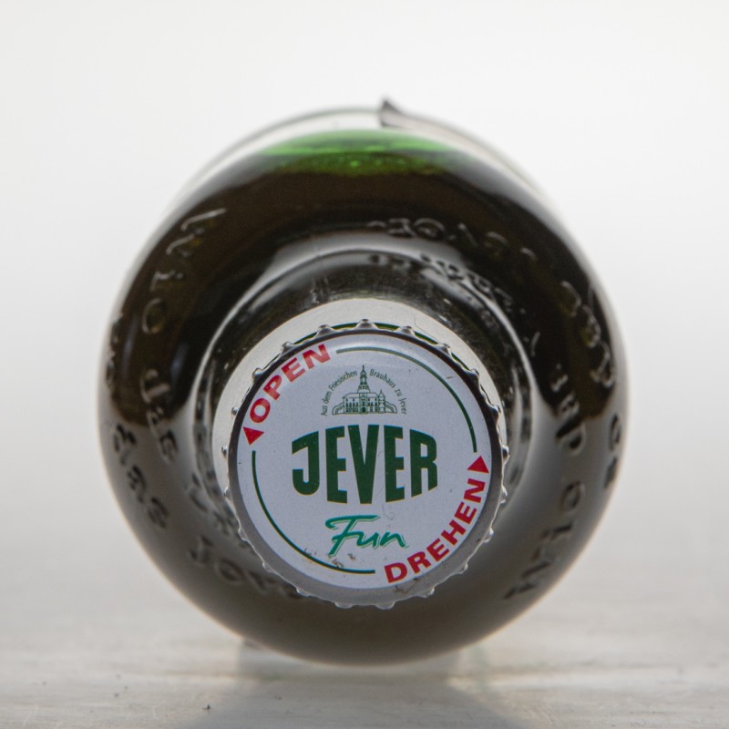 Aus dem Friesischen Brauhaus zu Jever / JEVER / BIER BEER BIRRA CERVEZA / … / Zutaten: Wasser, Gerstenmalz, Hopfenextrtakt, Gärungskohlensäure / Mindestens haltbar bis: siehe vorne. Gebraut nach dem Deutschen Reinheitsgebot. / 100ml enthalten/contain Brennwert/calories 76kJ (18kcal) Eiweiß/protein 0,47g Kohlenhydrate/carbohydrate 2,8g Fett/fat 0,0g / 11.6 fl. oz. imp. 1978-02 / e 0,33l/33cl/330ml / Friesisches Brauhaus zu Jever, 26441 Jever, Germany / DER GRÜNE PUNKT / 4 008948 114540