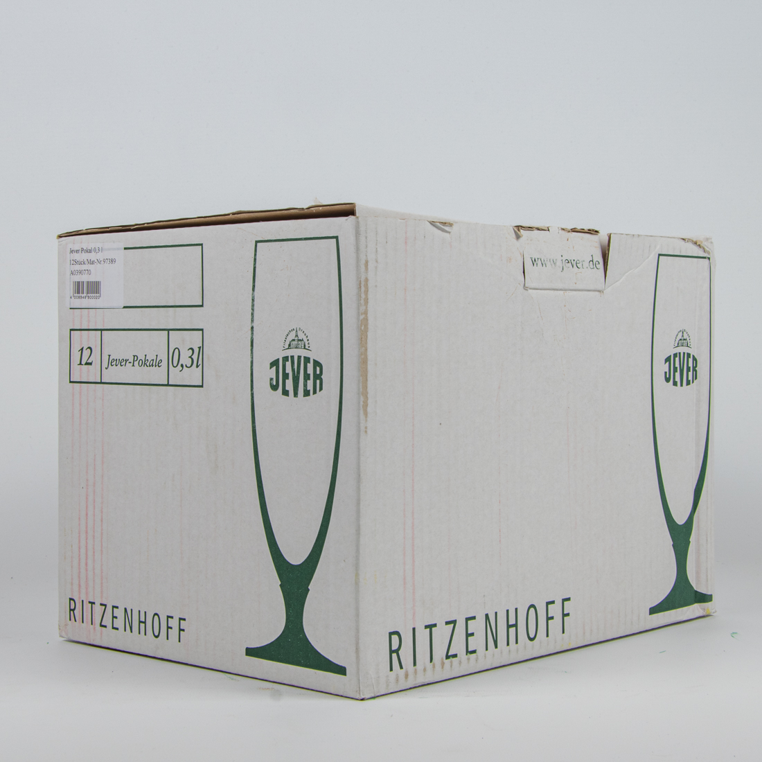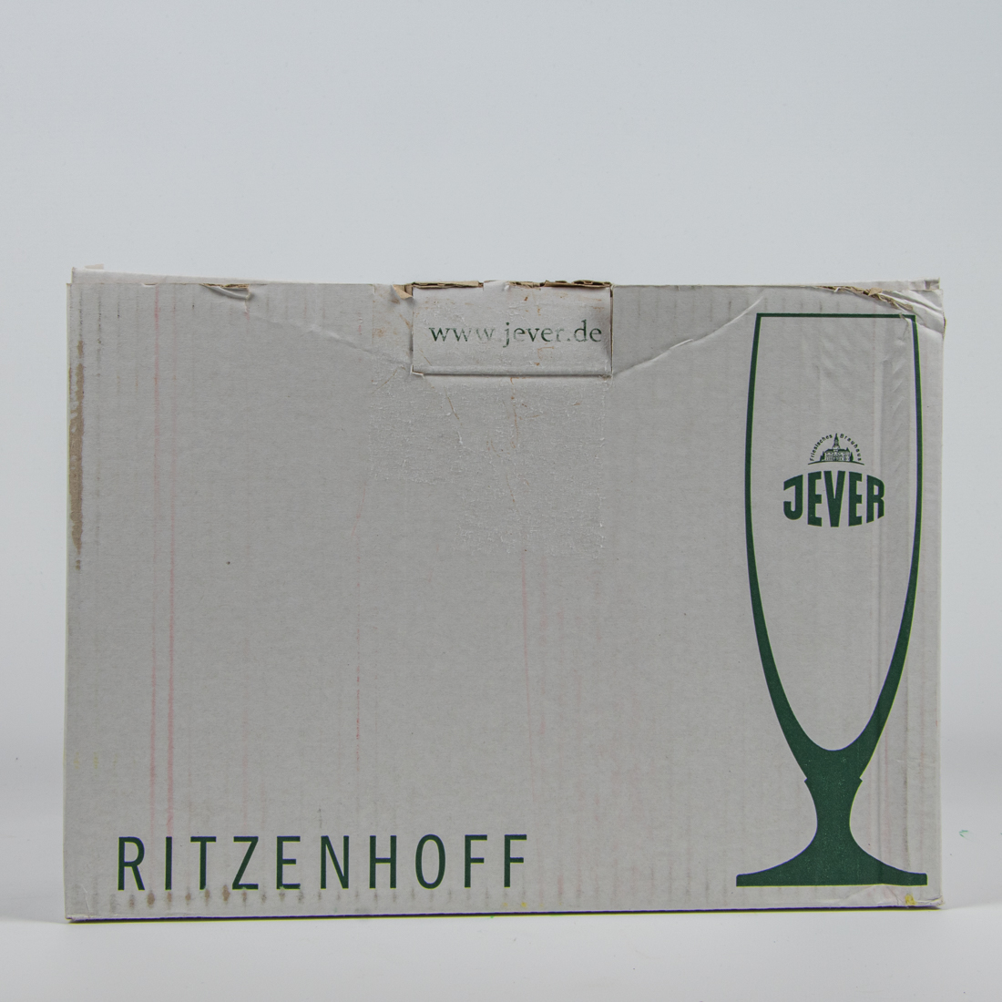 Der Karton passt im Prinzip zu allen Ritzenhoff-Gläsern des Typs “Jever-Pokal” in der Größe 0,2l. Der Eichstrich ist entweder “JEVER”, “RC” oder “RITZENHOFF”.