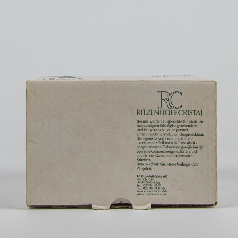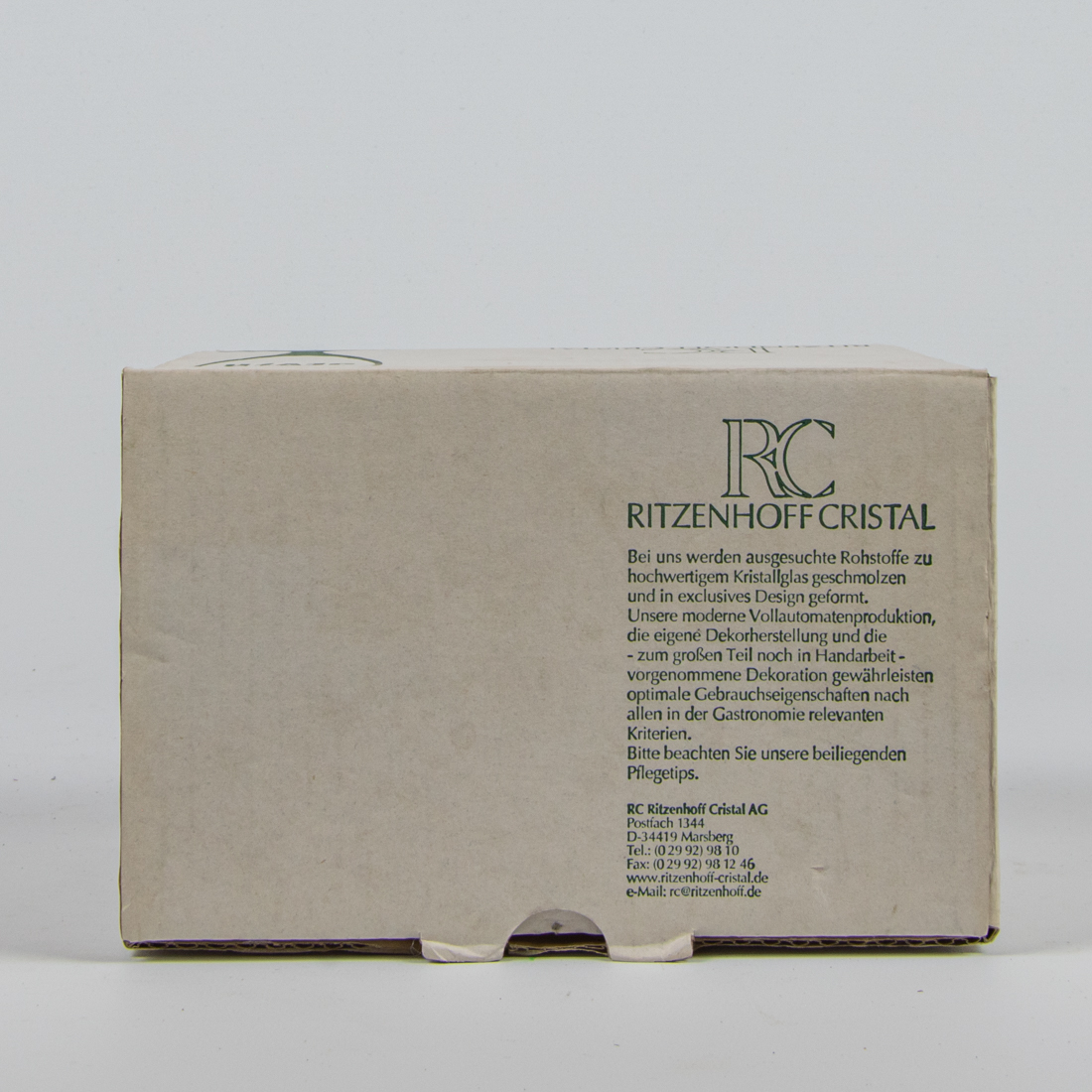 RC / RITZENHOFF CRISTAL / Bei uns werden ausgesuchte Rohstoffe zu hochwertigem Kristallglas geschmolzen und in exclusives Design geformt. Unsere moderne Vollautomatenproduktion, die eigene Dekorherstellung und die - zum großen Teil noch in Handarbeit - vorgenommene Dekoration gewährlesiten optimale Gebrauchseigenschaften nach allen in der Gastronomie relevanten Kriterien. Bitte beachten Sie unsere beiliegenden Pflegetips. / RC Ritzenhoff Cristal AG / Postfach 1344 / D-34419 Marsberg / Tel.: (02992) 9810 / FaX (02992) 981246 / www.ritzenhoff-cristal.de / e-Mail: rc@ritzenhoff.de