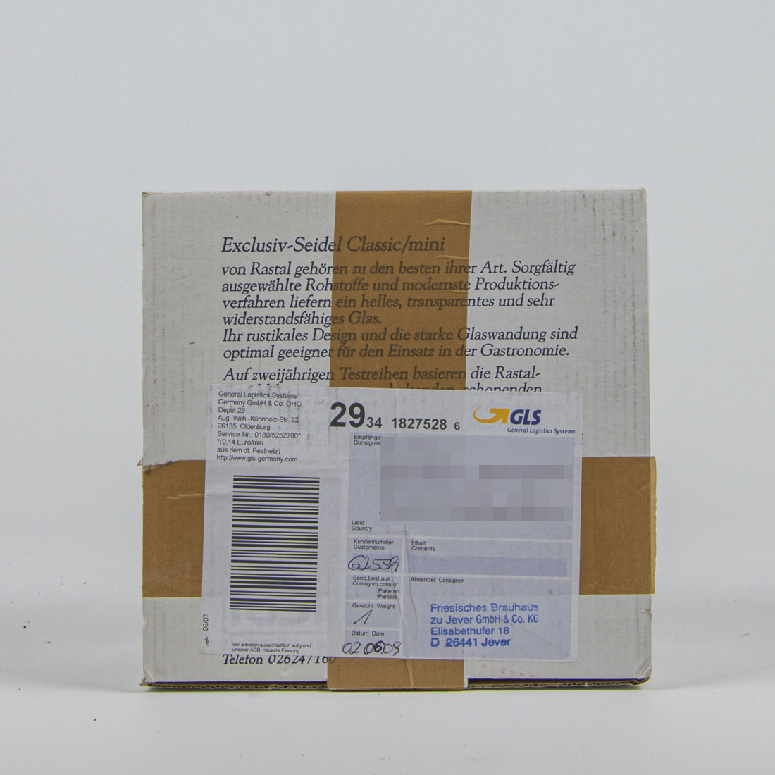 Attribut Wert Alter (min.) Alter (max.) Identifikation (Jever-Fan) ID I003232 / S0763 / Typ Glaskarton Attribute (Allgemein) Form Quader Herstellername Rastal GmbH & Co. KG Attribute (Zeitstempel) Eigene 20090000 2009 2009